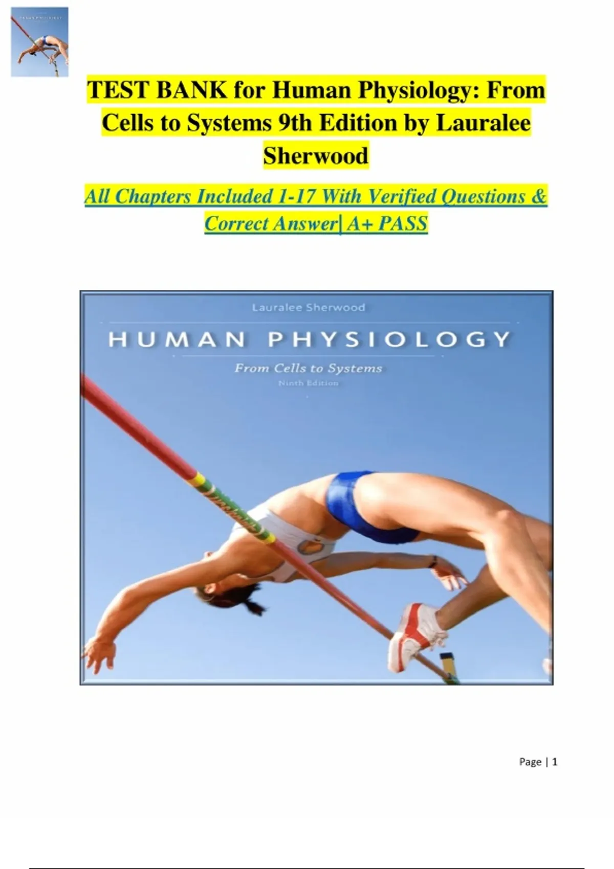 Test bank for human physiology: from cells to systems 9th edition, by Lauralee Sherwood.|All chapters covered.