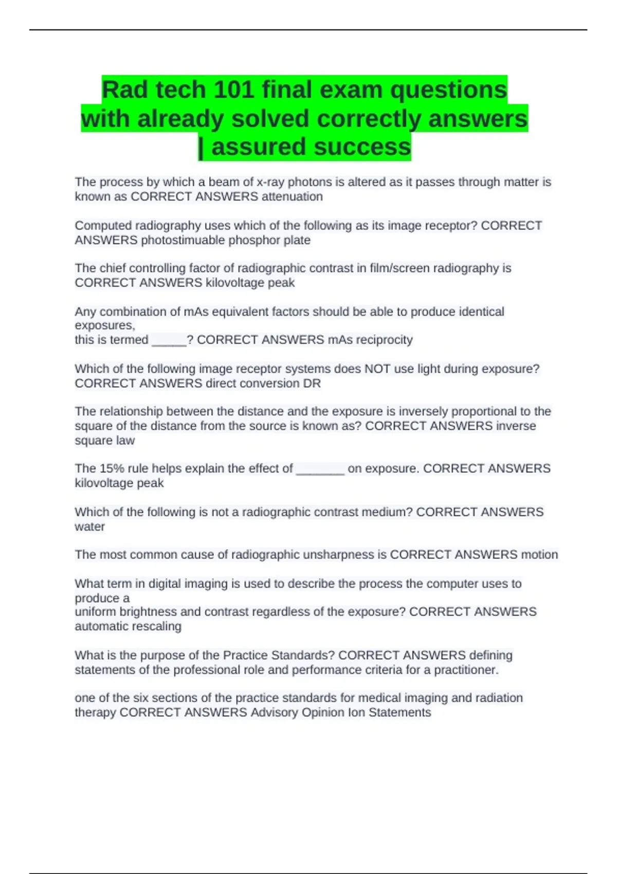 CORRECT ANSWERS kilovoltage peak
