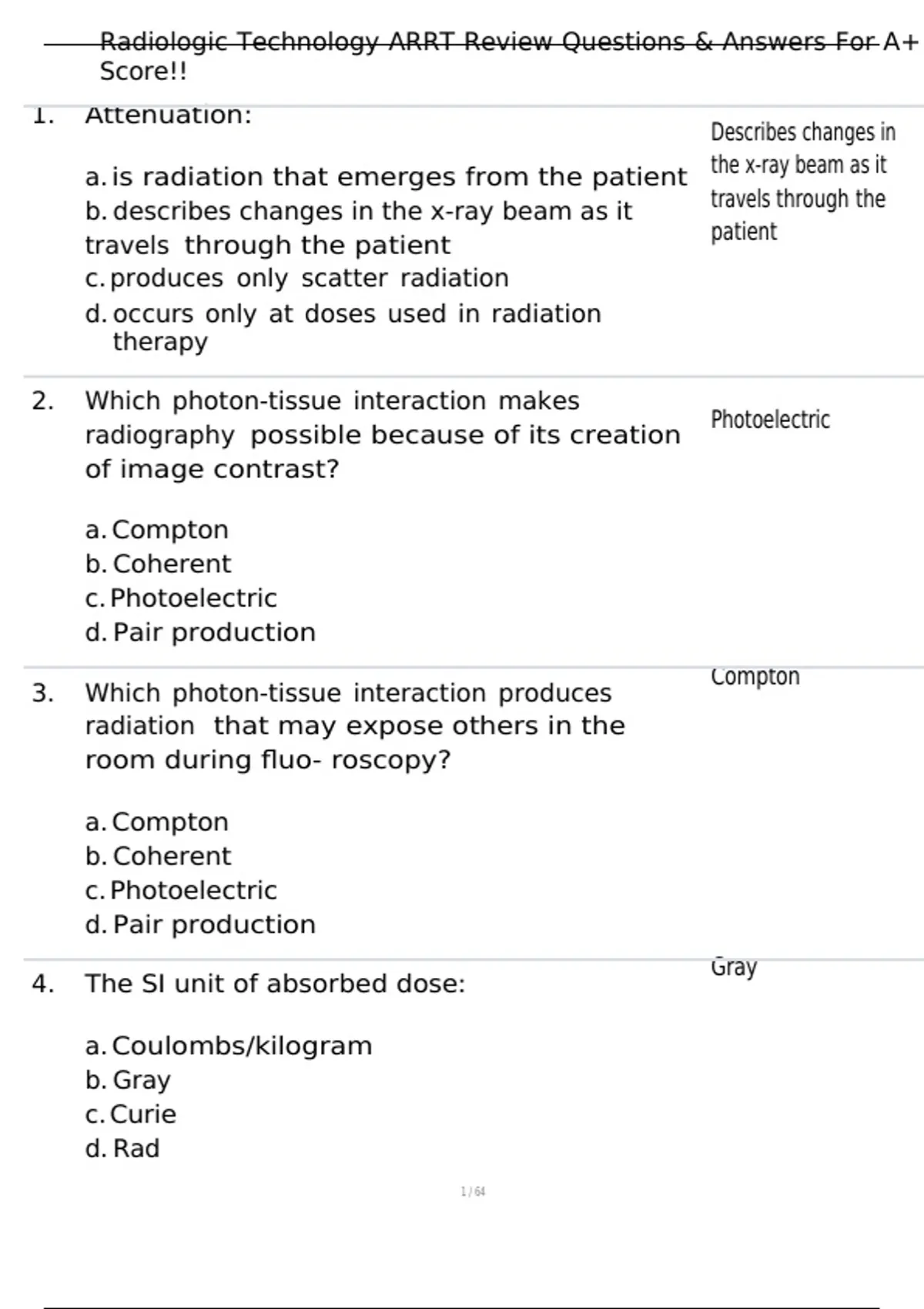 , Radiologic Technology ARRT Review Questions & Answers For A+