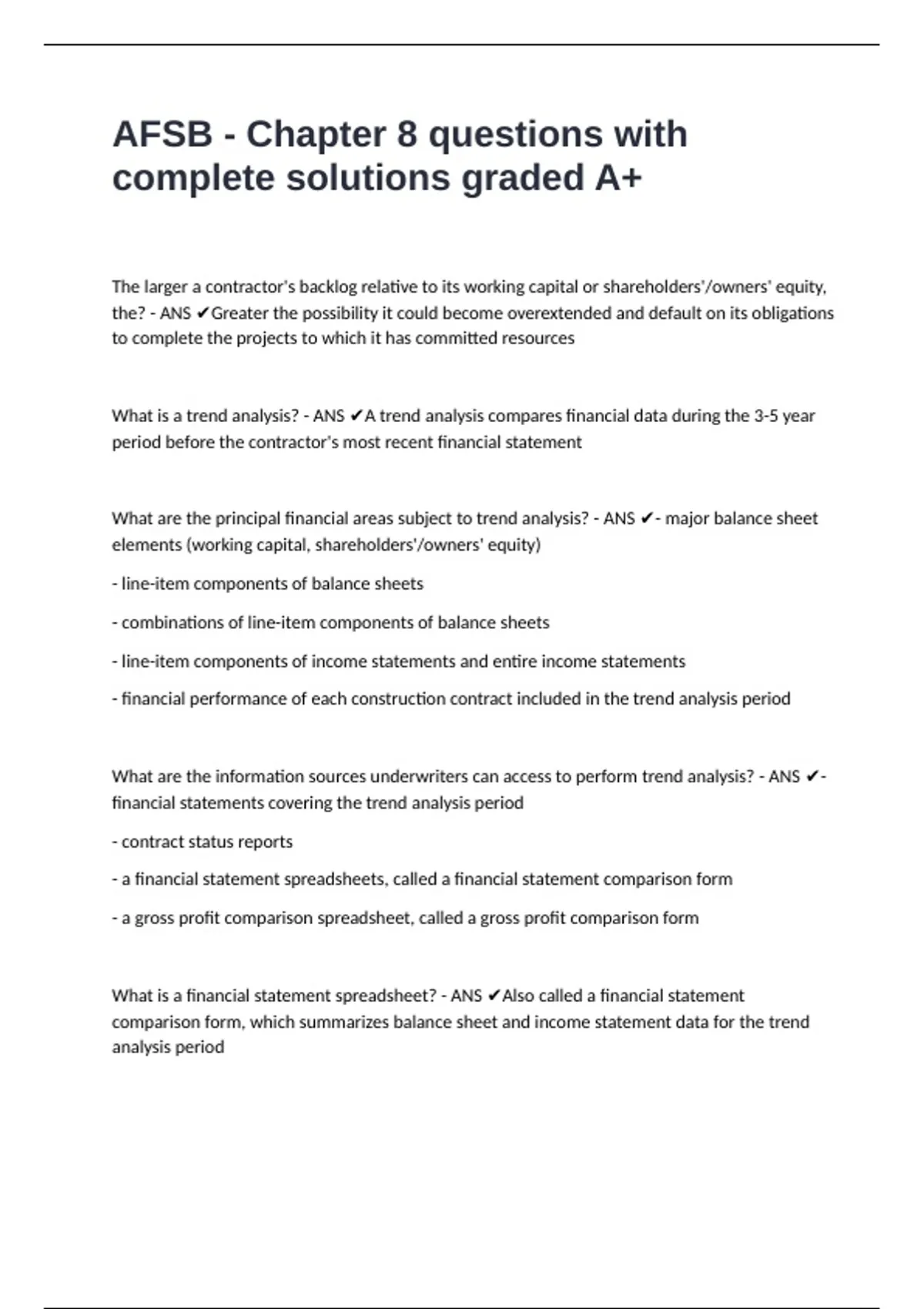 AFSB - Chapter 8 questions with complete solutions graded A+