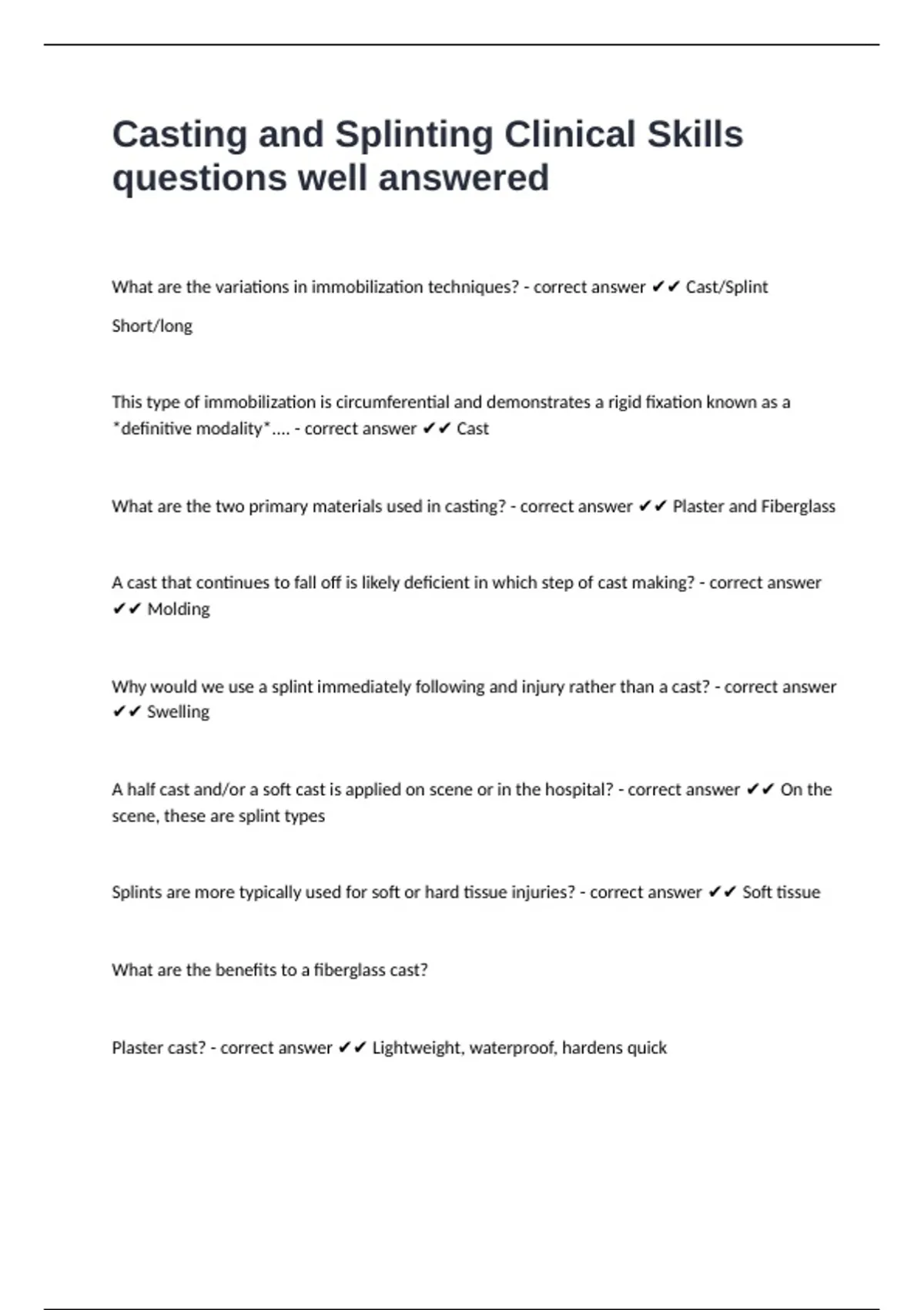 Plaster cast? - correct answer ✔✔ Lightweight, waterproof, hardens quick