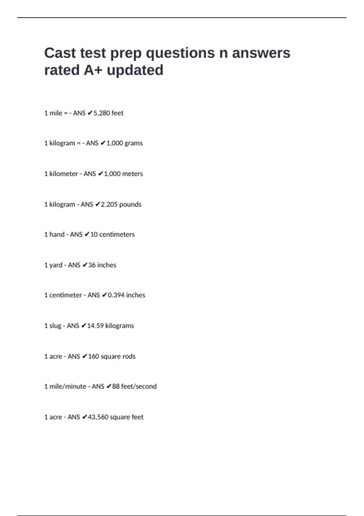 Cast test prep questions n answers rated A+ updated