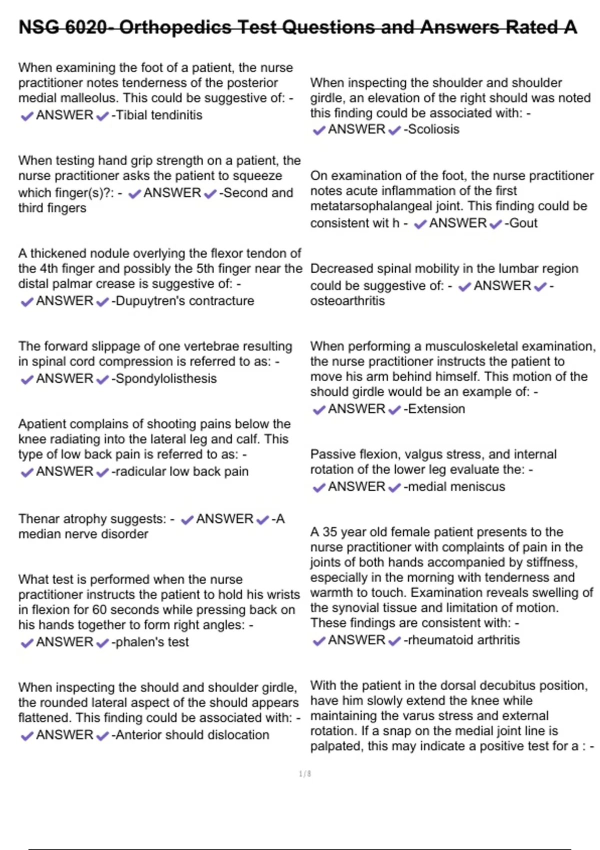 , NSG 6020- Orthopedics Test Questions and Answers Rated A