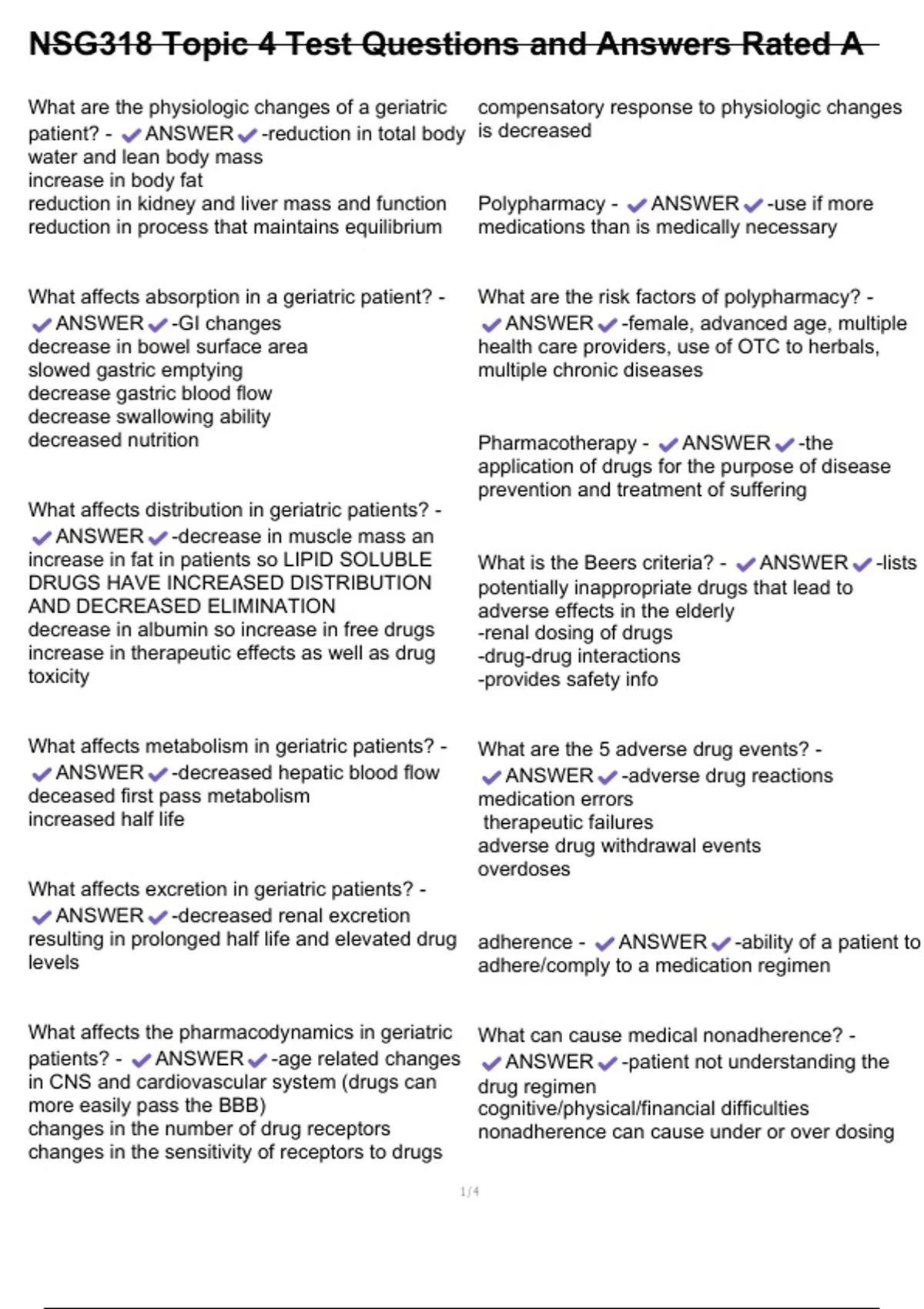 increase in fat in patients so LIPID SOLUBLE What is the Beers criteria? - ANSWER -lists