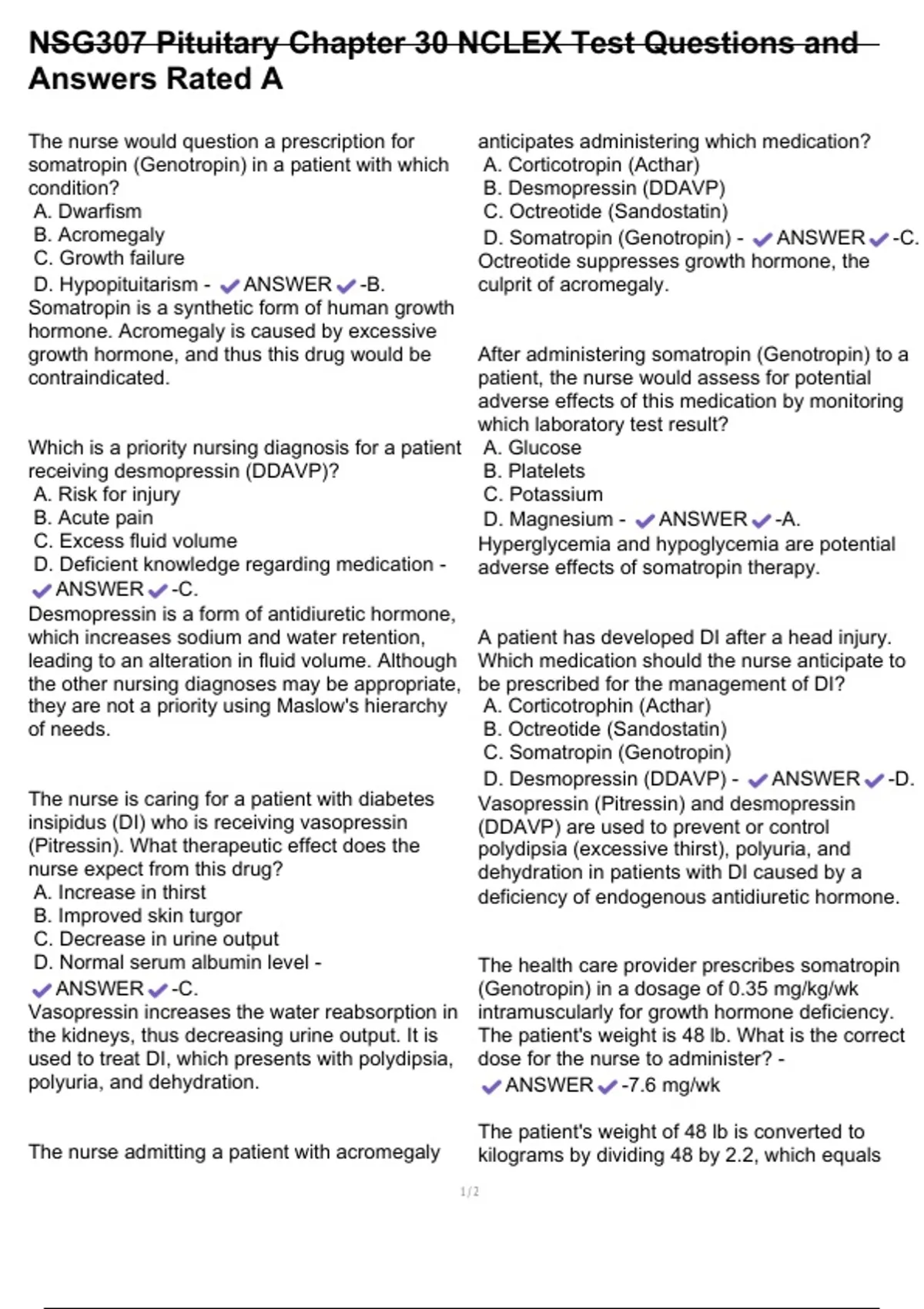 B. Acromegaly D. Somatropin (Genotropin) - ANSWER -C.