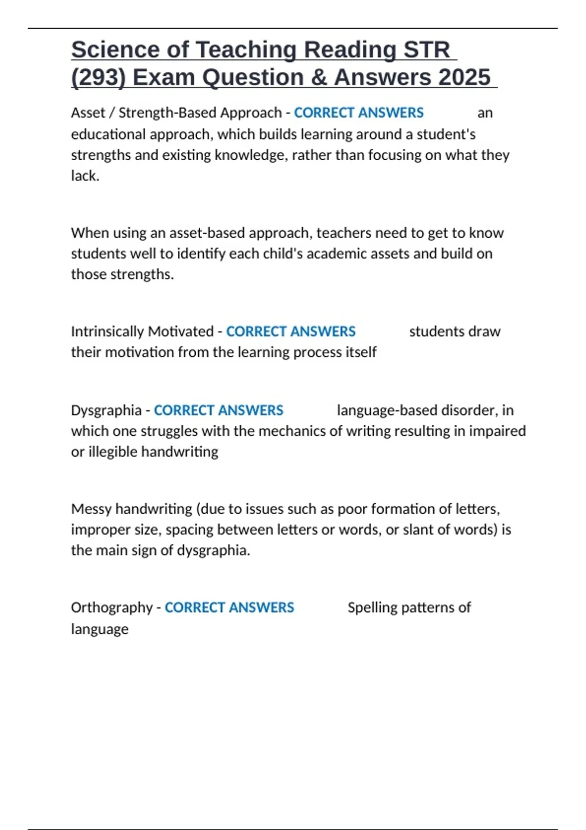 Science of Teaching Reading STR (293) Exam Question & Answers 2025.docx