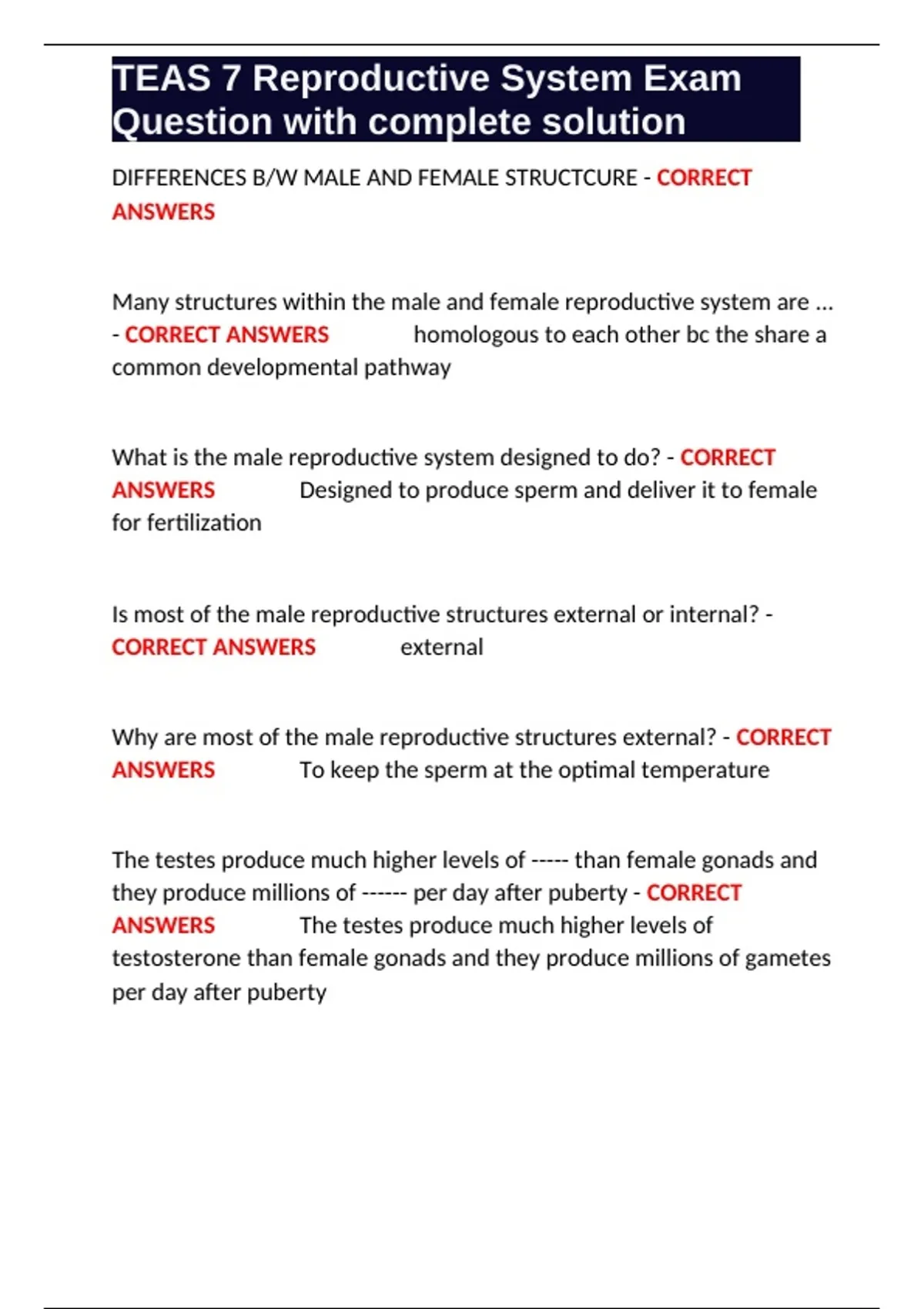 TEAS 7 Reproductive System Exam Question with complete solution.docx