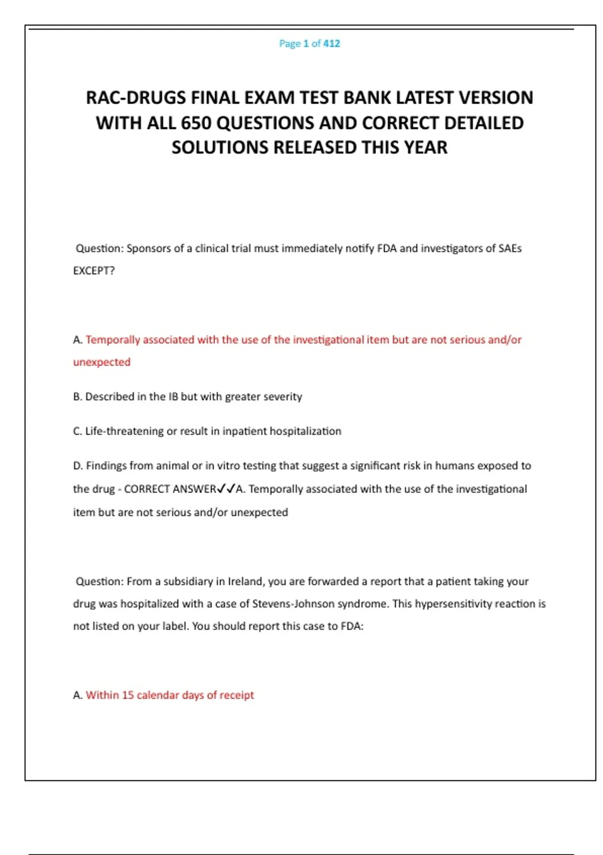 RAC-DRUGS FINAL EXAM TEST BANK LATEST VERSION