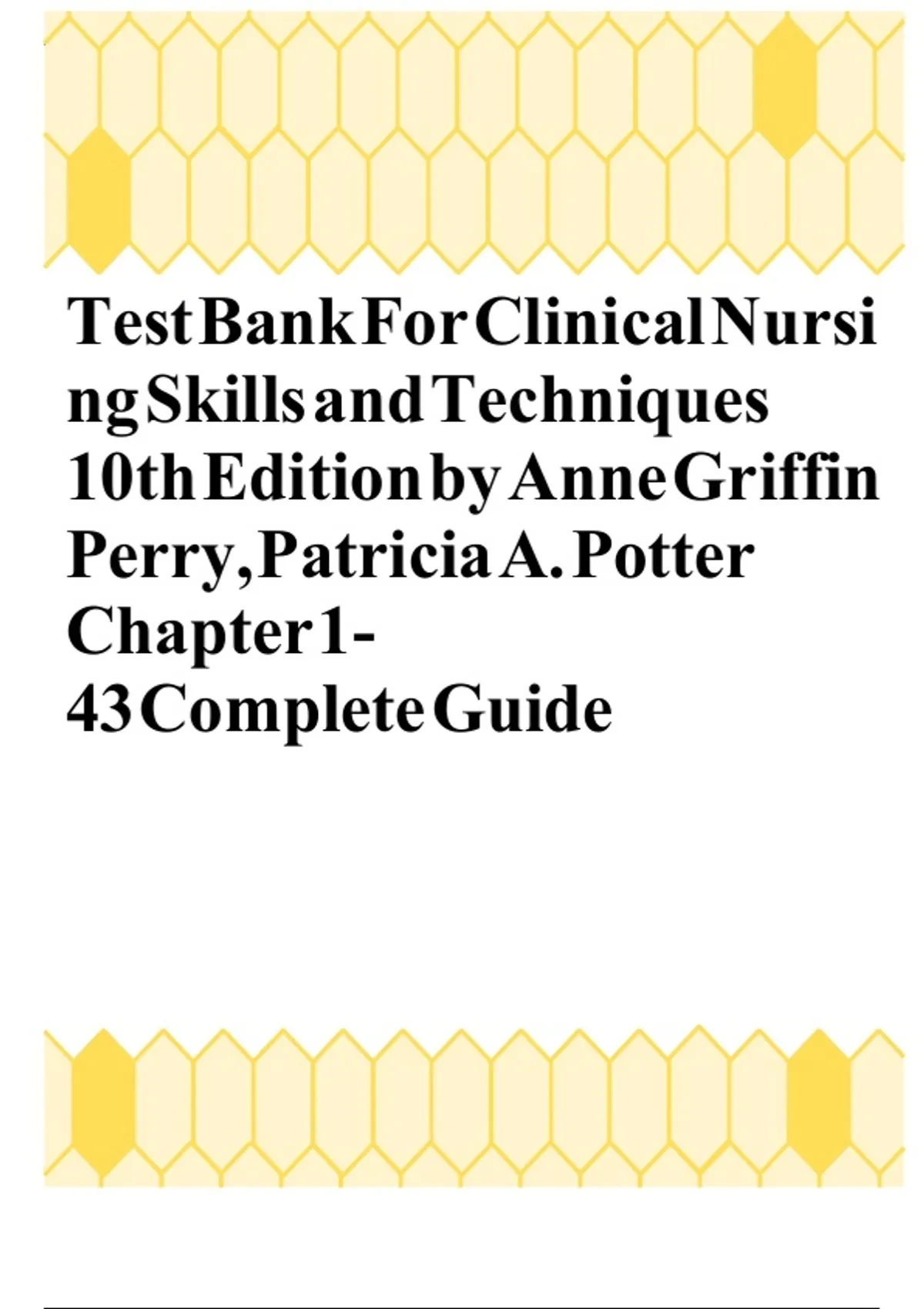 TEST BANK FOR CLINICAL NURSING SKILLS AND TECHNIQUES 10TH EDITION BY ANNE GRIFFIN PERRY, PATRICIA A. POTTER CHAPTER 1-43 COMPLETE GUIDE