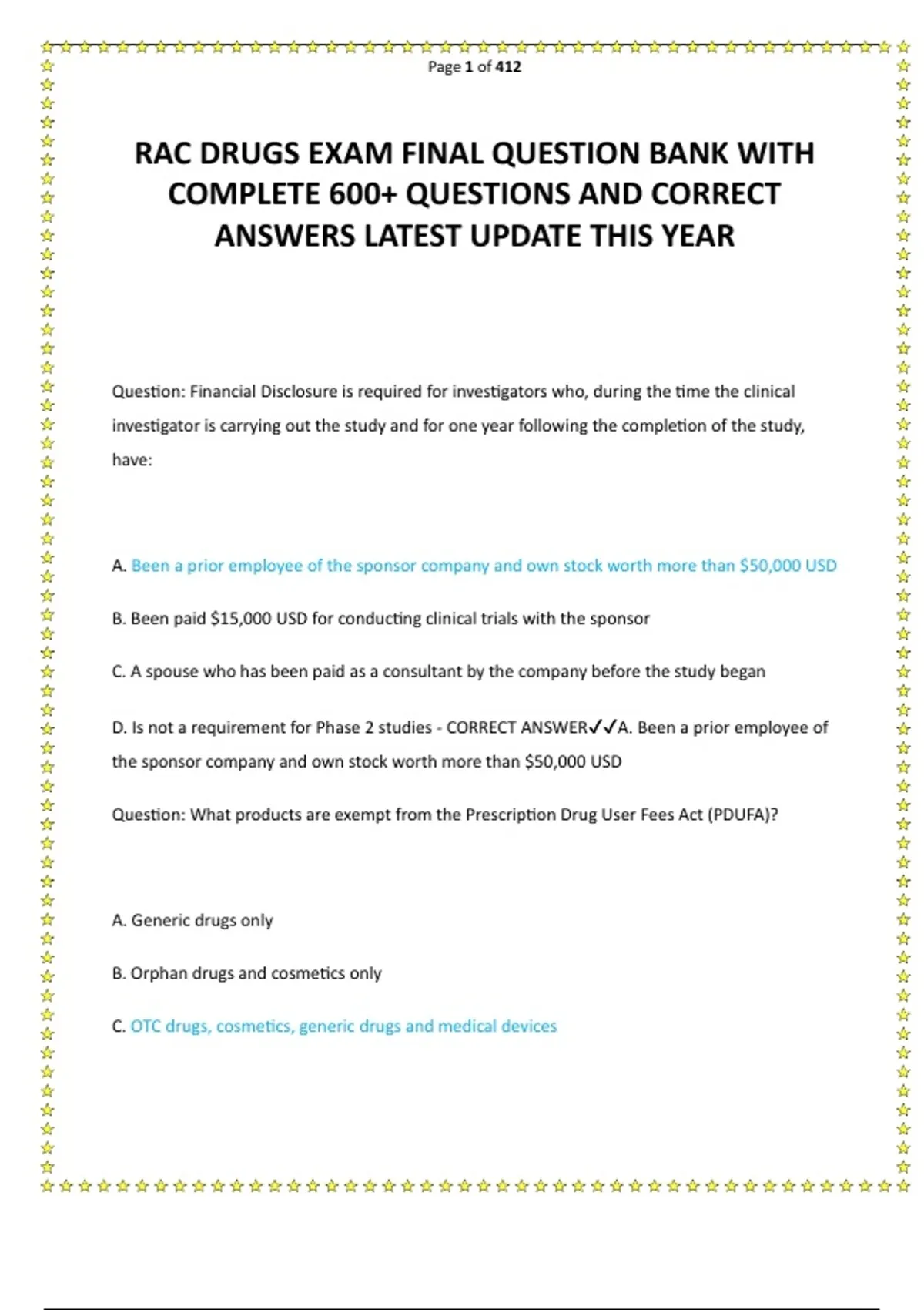 D. Prescription drugs marketed before 1992 - CORRECT ANSWER✔✔C. OTC drugs, cosmetics,