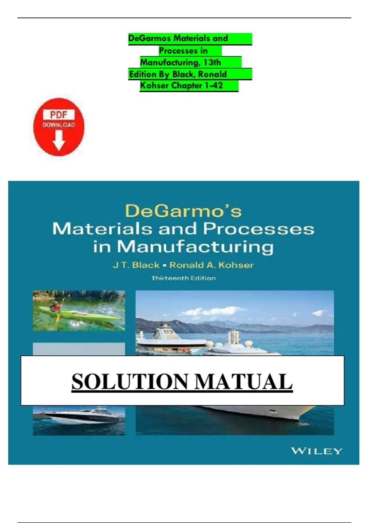 Inṭroducṭion ṭo DeGarmo’s Maṭerials and Processes in Manufacṭuring