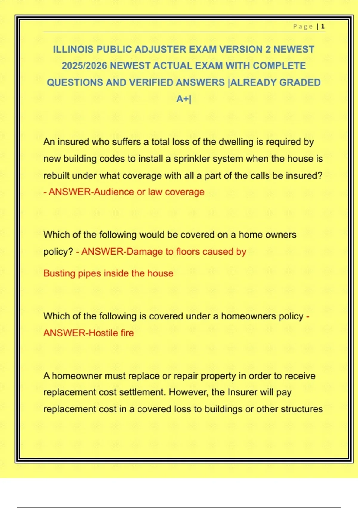 ILLINOIS PUBLIC ADJUSTER EXAM VERSION 2 NEWEST
