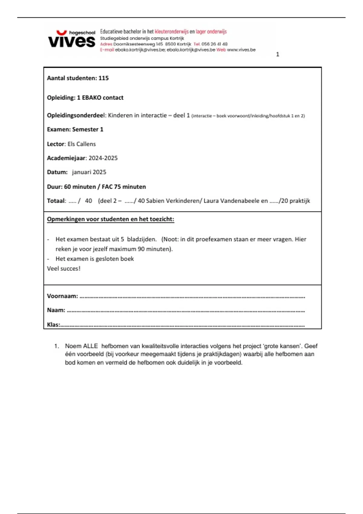 Opleidingsonderdeel: Kinderen in interactie – deel 1 (interactie – boek voorwoord/inleiding/hoofdstuk 1 en 2)