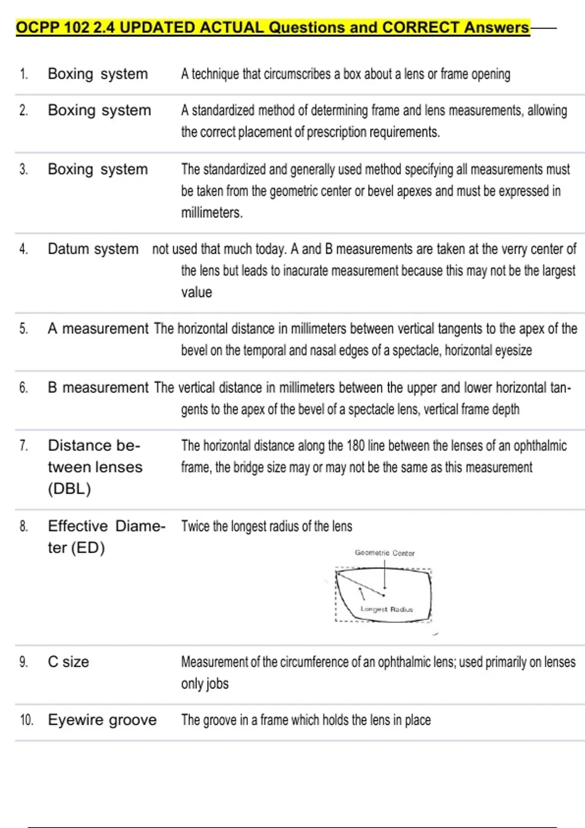 2. Boxing system A standardized method of determining frame and lens measurements, allowing