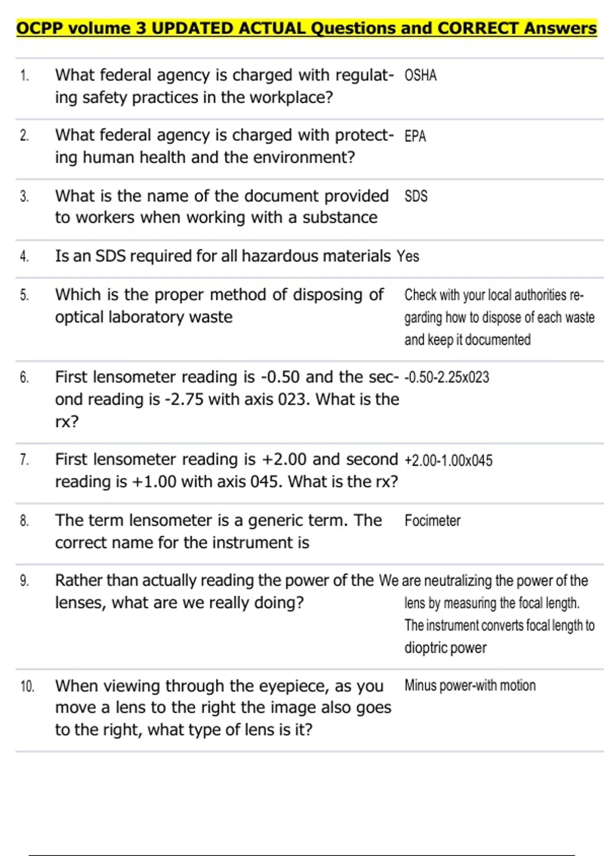 1. What federal agency is charged with regulat- OSHA