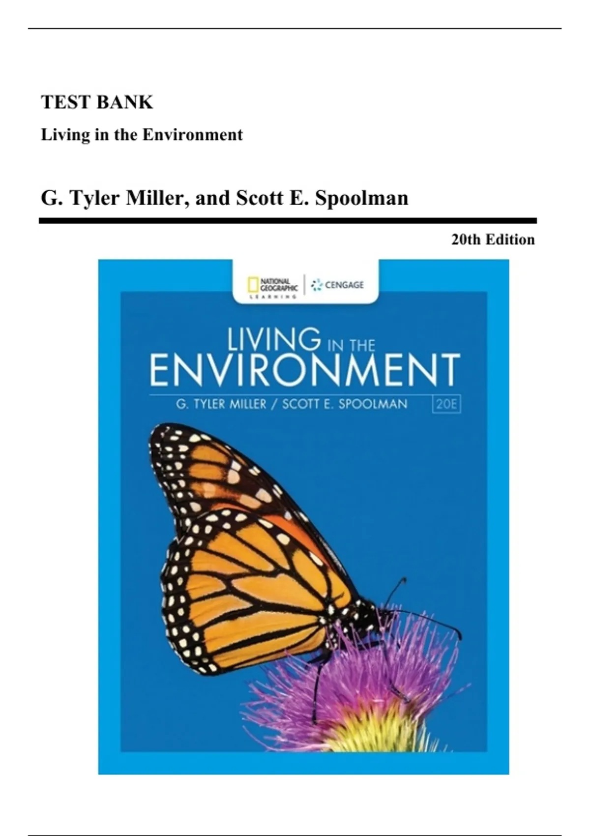 Test Bank - Living in the Environment, 20th Edition (Miller, 2021)