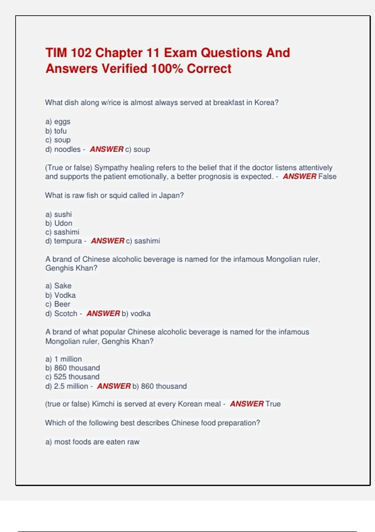 d) tempura - ANSWER c) sashimi