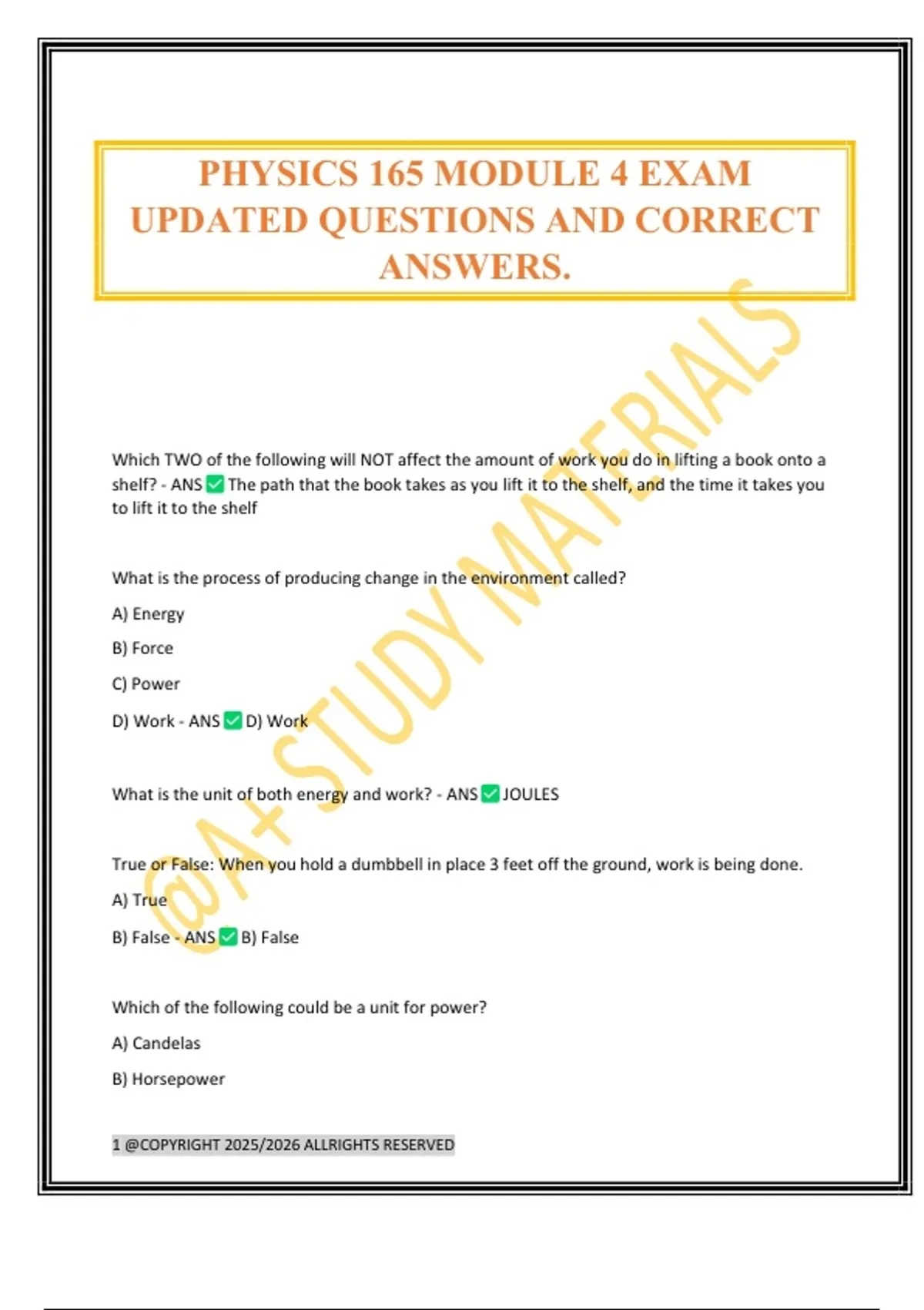 PHYSICS 165 MODULE 4 EXAM UPDATED QUESTIONS AND CORRECT ANSWERS.