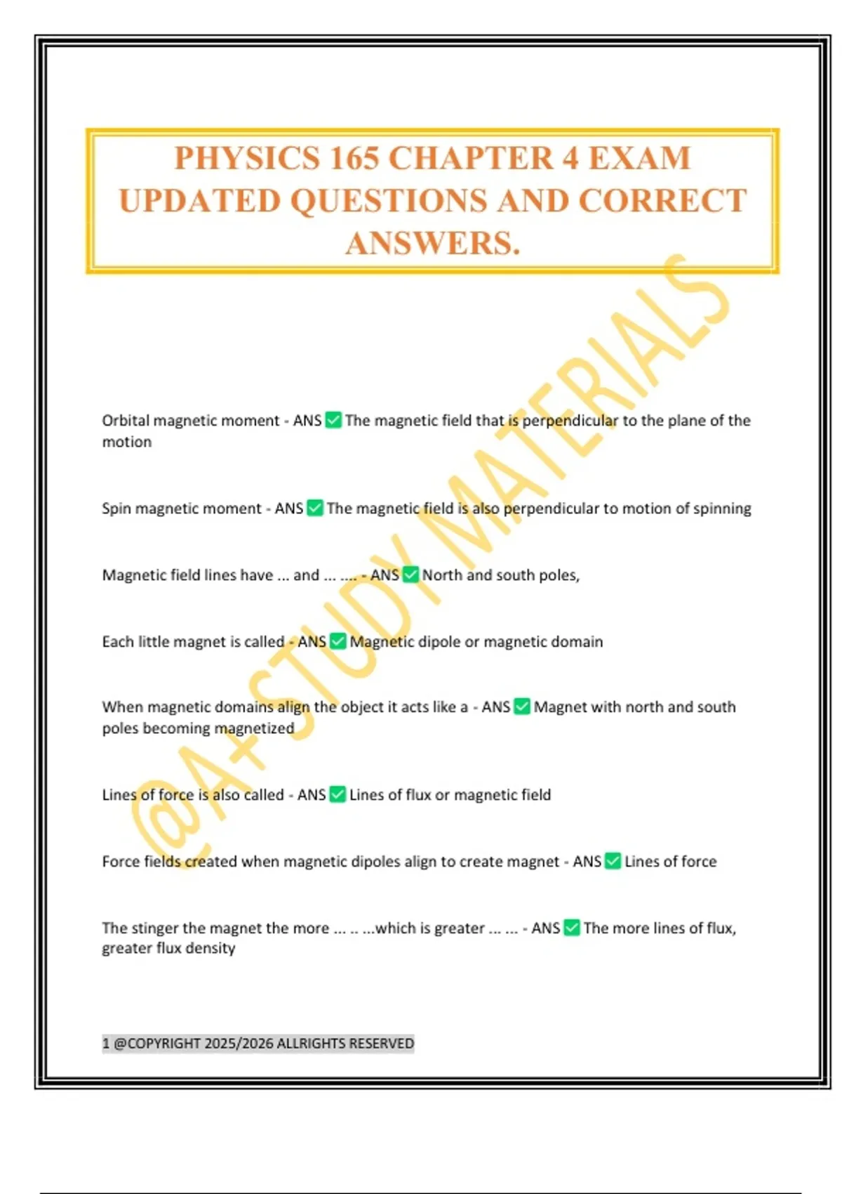 UPDATED QUESTIONS AND CORRECT