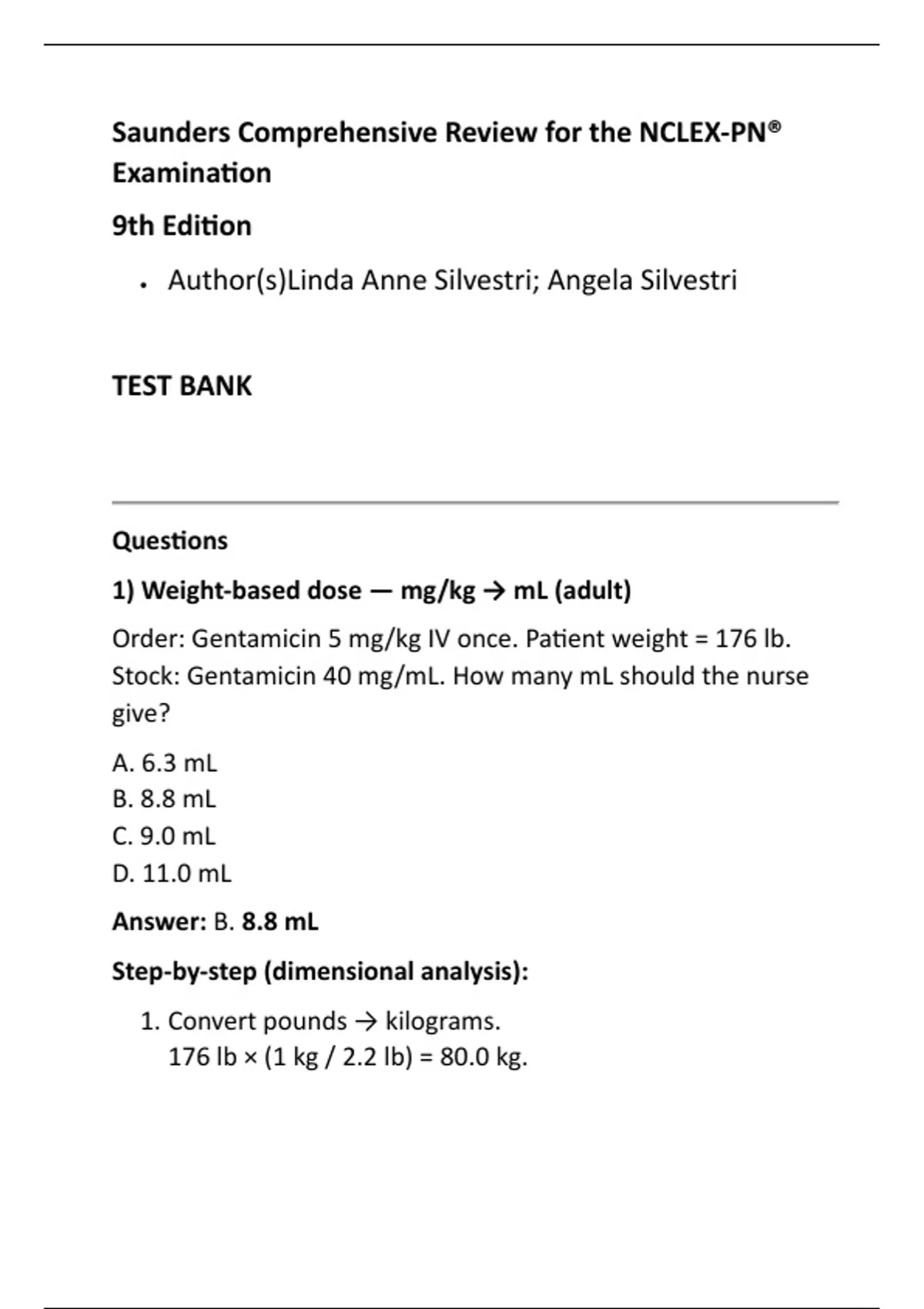 , • B (8.8 mL): likely results from using 176 lb / 2.0 ≈ 88 kg and