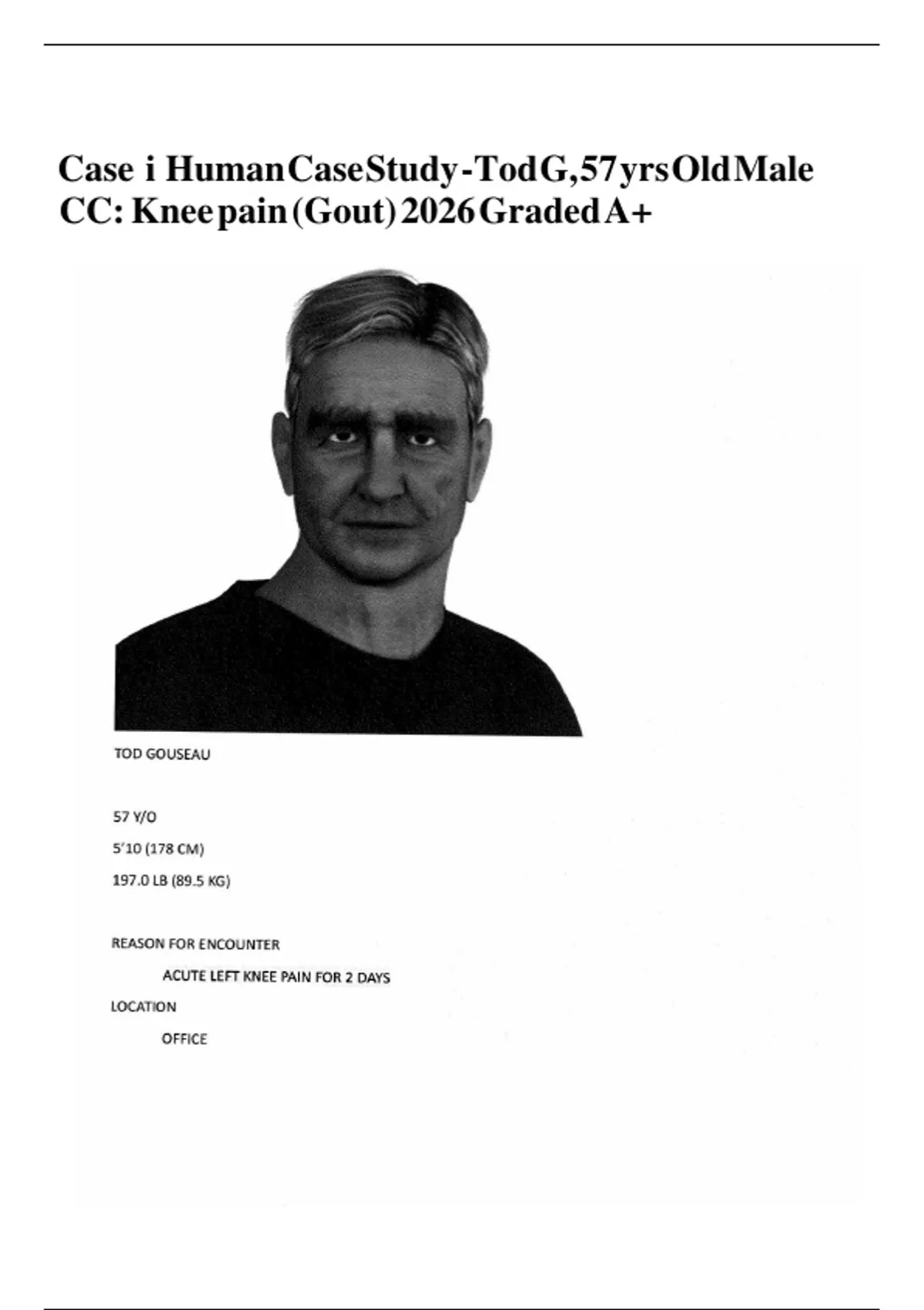 Case iHuman Case Study - Tod G, 57 yrs Old Male CC: Knee pain (Gout) 2026 Graded A+Case iHuman Case Study - Tod G, 57 yrs Old Male CC: Knee pain (Gout) 2026 Graded A+Case iHuman Case Study - Tod G, 57 yrs Old Male CC: Knee pain (Gout) 2026 Graded A+Case iHuman Case Study - Tod G, 57 yrs Old Male CC: Knee pain (Gout) 2026 Graded A+Case iHuman Case Study - Tod G, 57 yrs Old Male CC: Knee pain (Gout) 2026 Graded A+Case iHuman Case Study - Tod G, 57 yrs Old Male CC: Knee pain (Gout) 2026 Graded A+