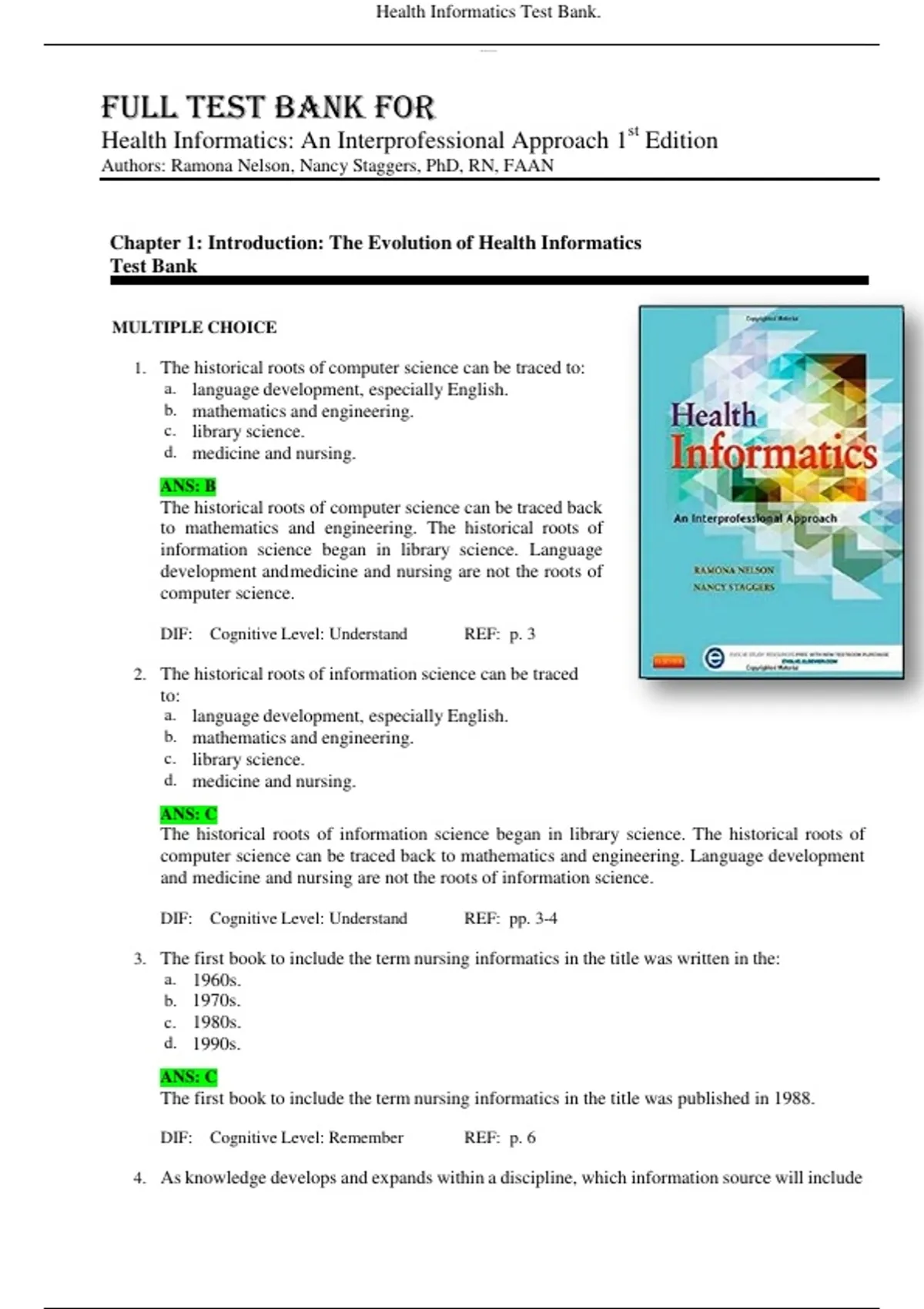 , Health Informatics Test Bank.