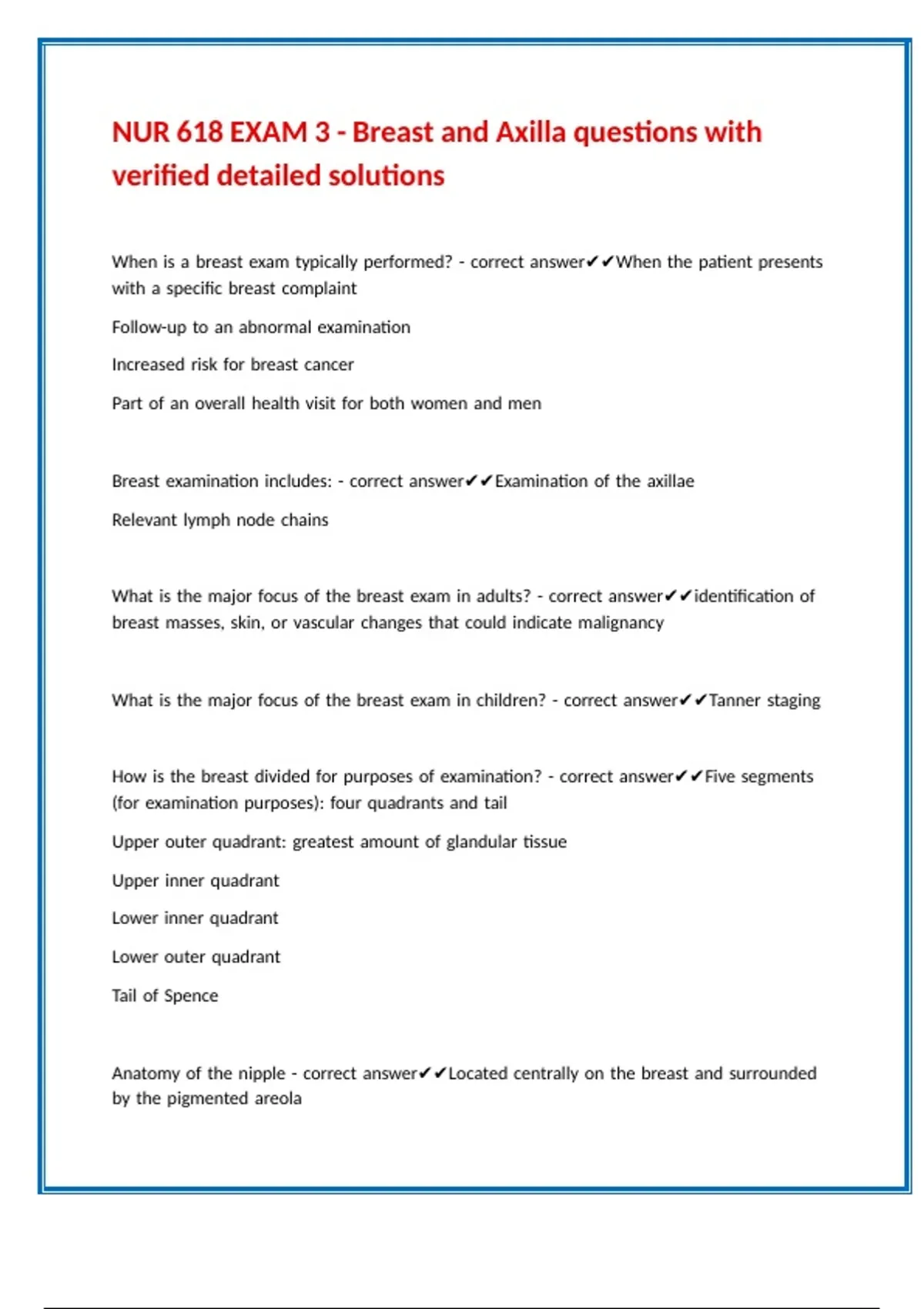 NUR 618 EXAM 3 - Breast and Axilla questions with ||\\//|| ||\\//|| ||\\//|| ||\\//|| ||\\//|| ||\\//|| ||\\//|| ||\\//|| ||\\//|| ||\\//||
