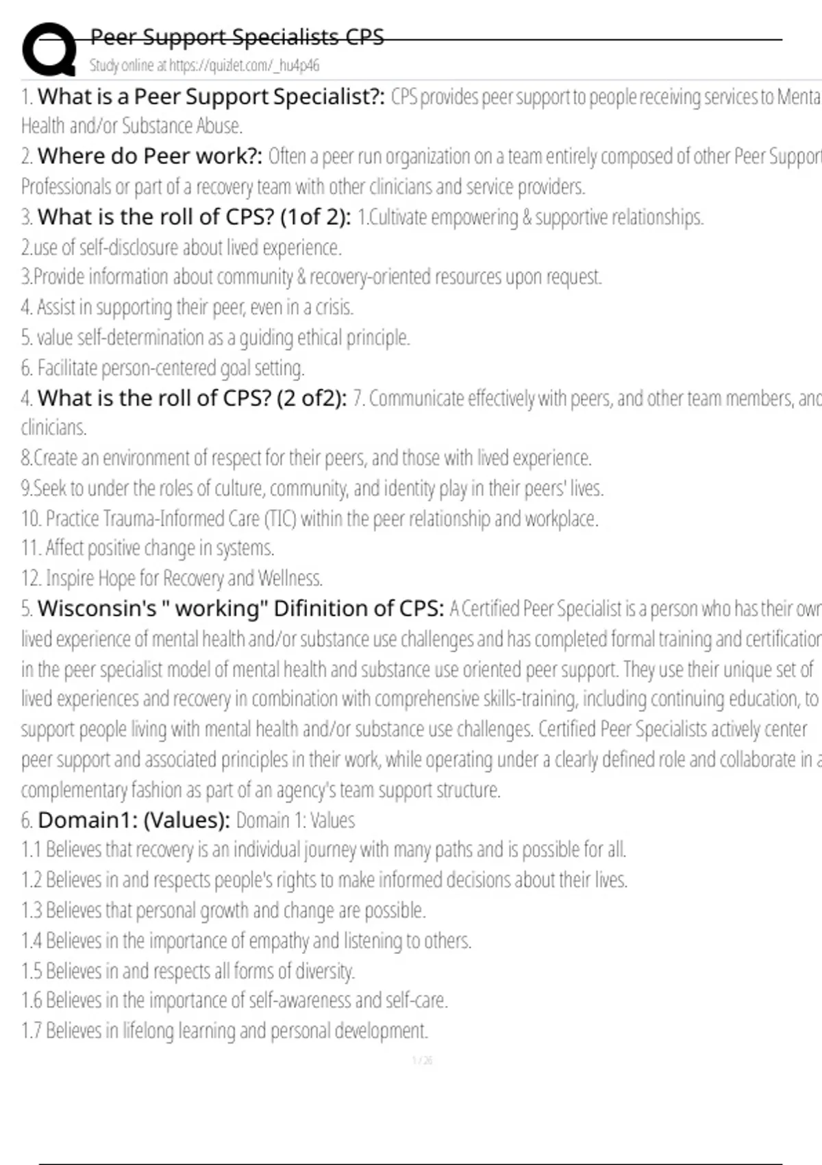 1. What is a Peer Support Specialist?: CPS provides peer support to people receiving services to Menta