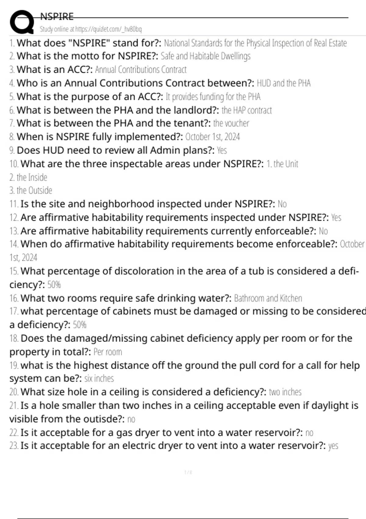 1. What does "NSPIRE" stand for?: National Standards for the Physical Inspection of Real Estate
