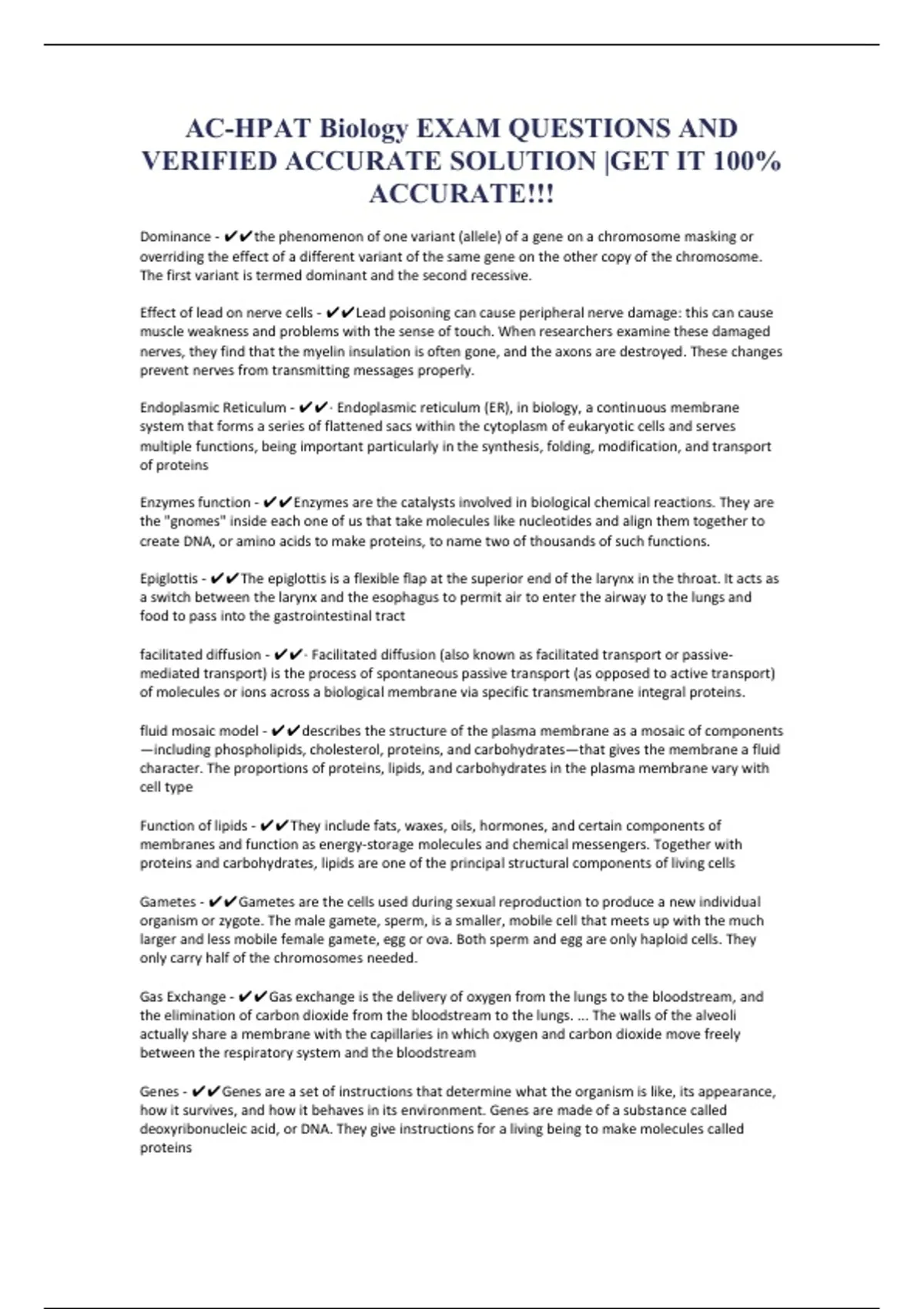 AC-HPAT Biology EXAM QUESTIONS AND VERIFIED ACCURATE SOLUTION |GET IT 100% ACCURATE!!!