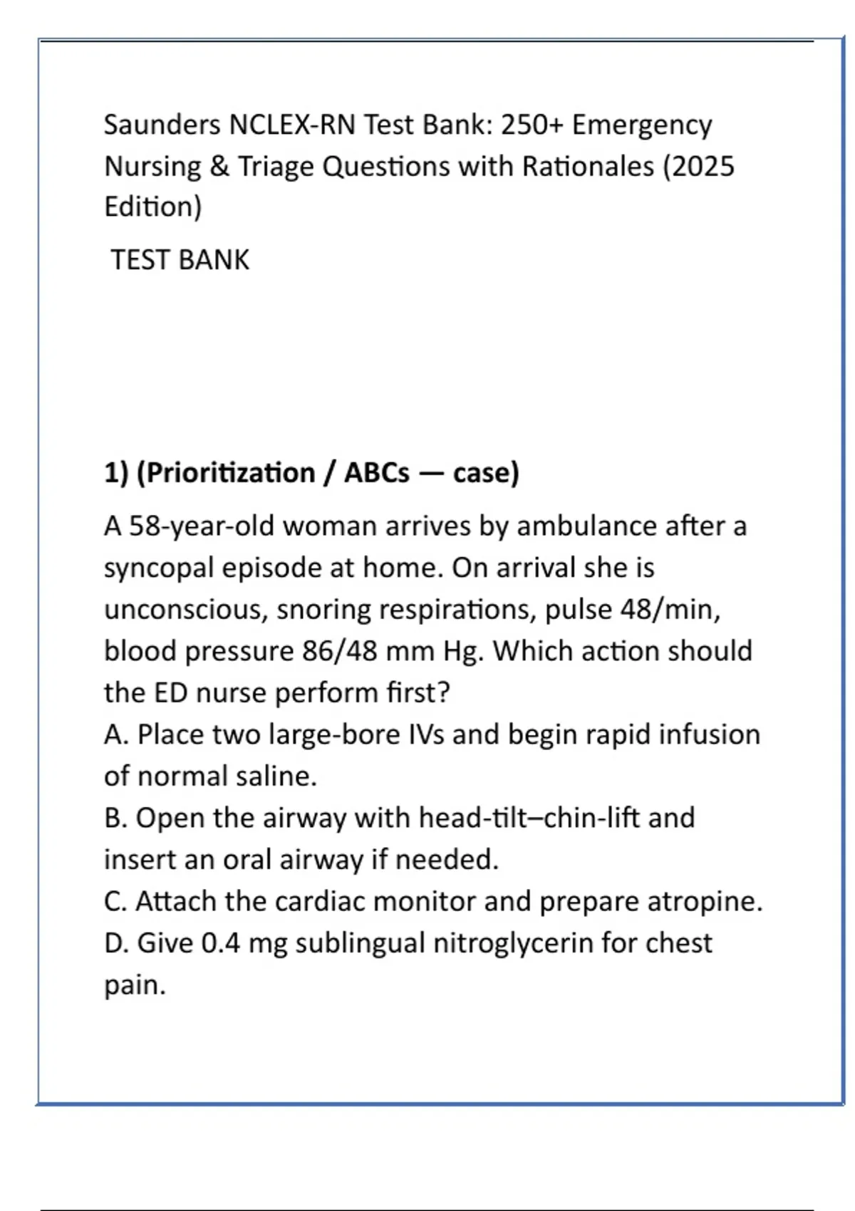 Nursing & Triage Questions with Rationales (2025
