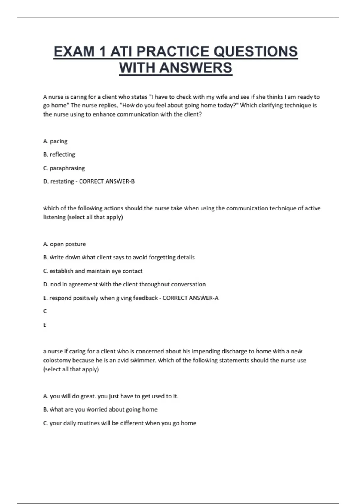 D. restating - CORRECT ANSẆER-B