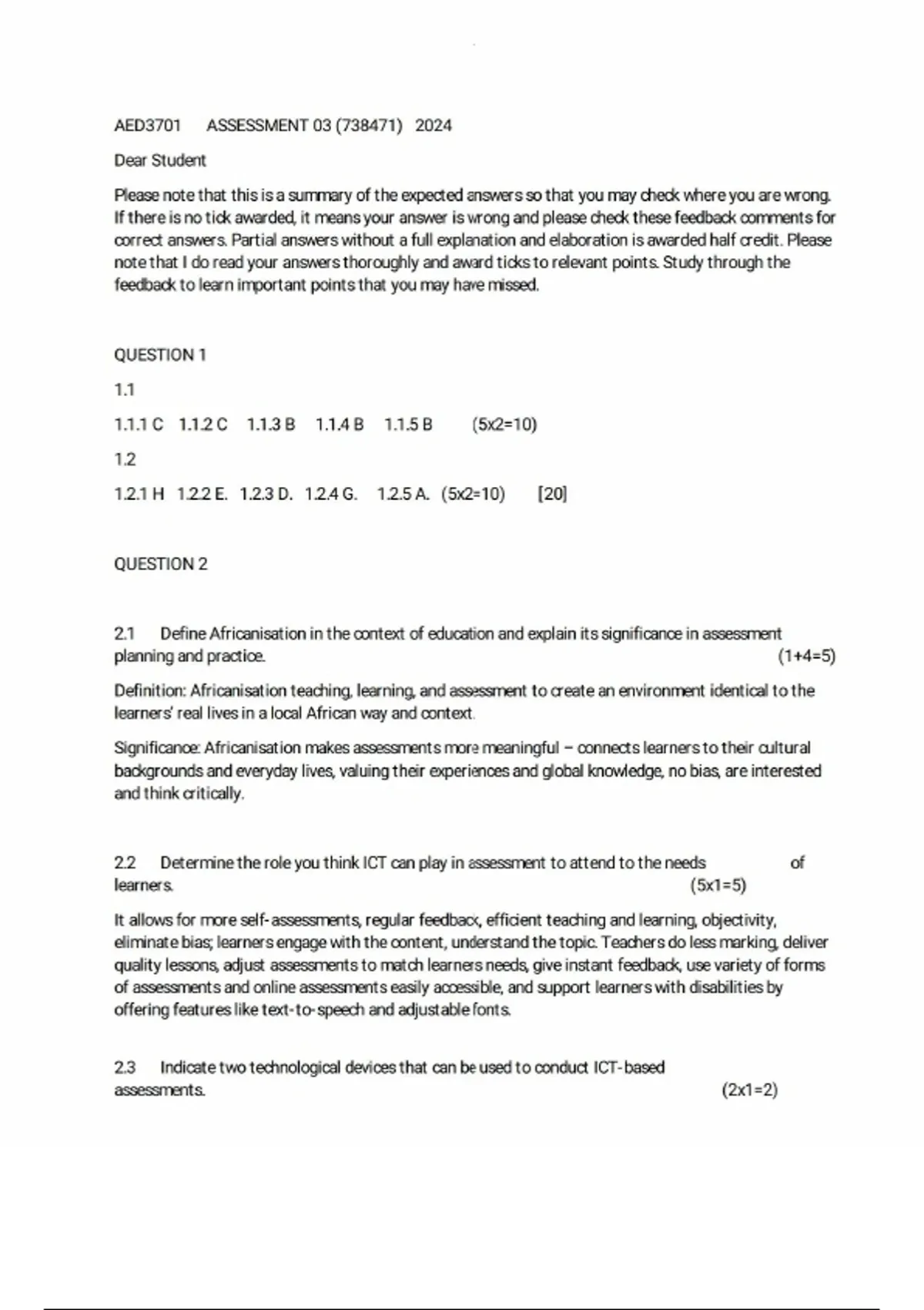 aed3701 assignment 3 memo test questions answers