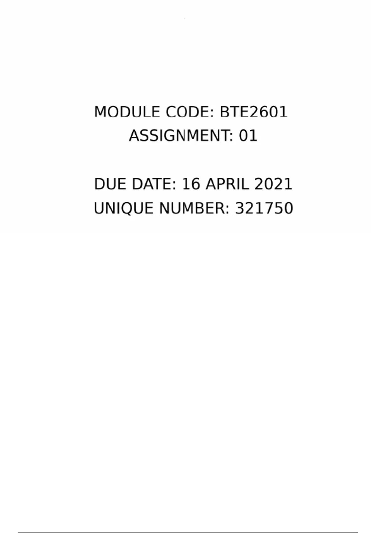 Sub April 16 BTE2601 Assignment 01 Questions & Answers