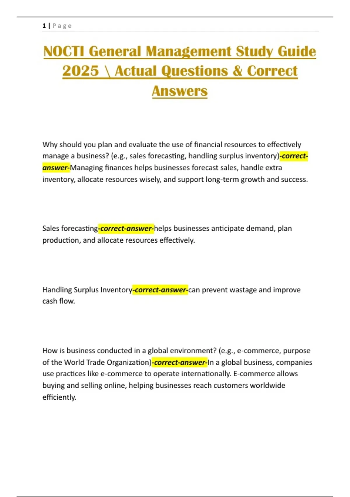 NOCTI General Management Study Guide 2025 Actual Questions & Correct Answers