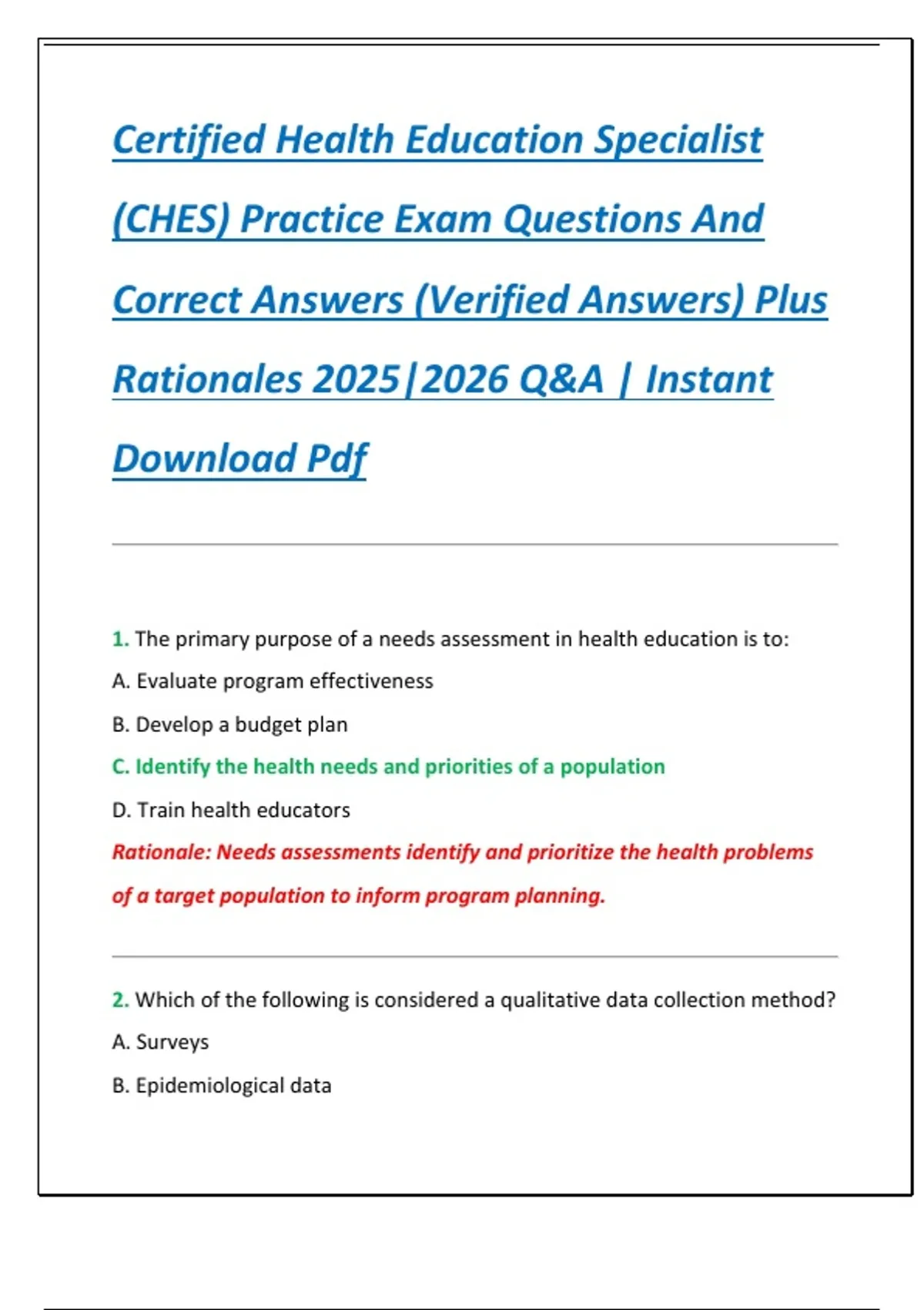 (CHES) Practice Exam Questions And