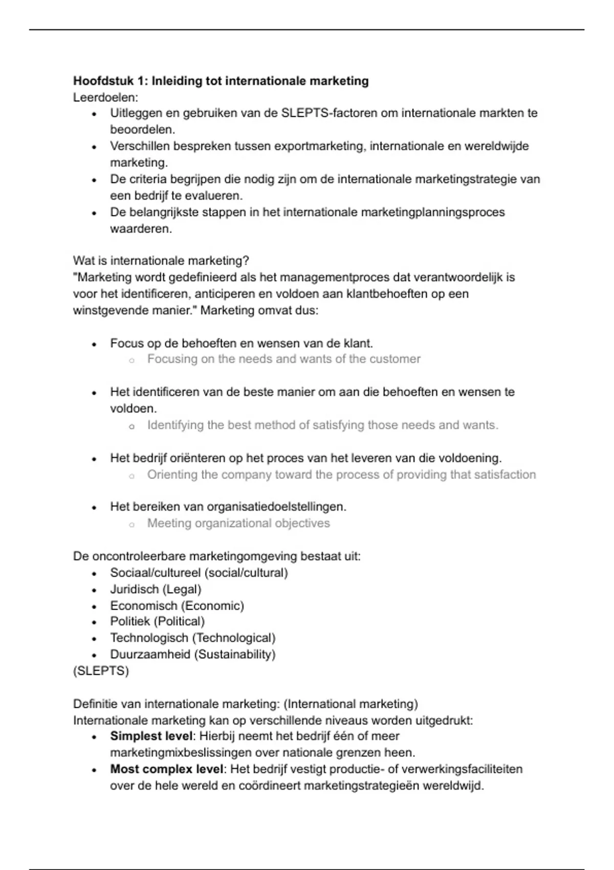 Hoofdstuk 1: Inleiding tot internationale marketing