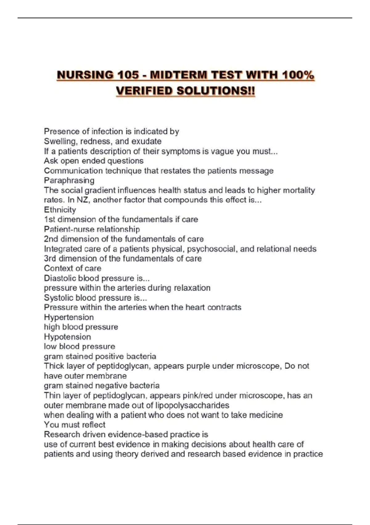 NURSING 105 - MIDTERM TEST WITH 100% VERIFIED SOLUTIONS!!...