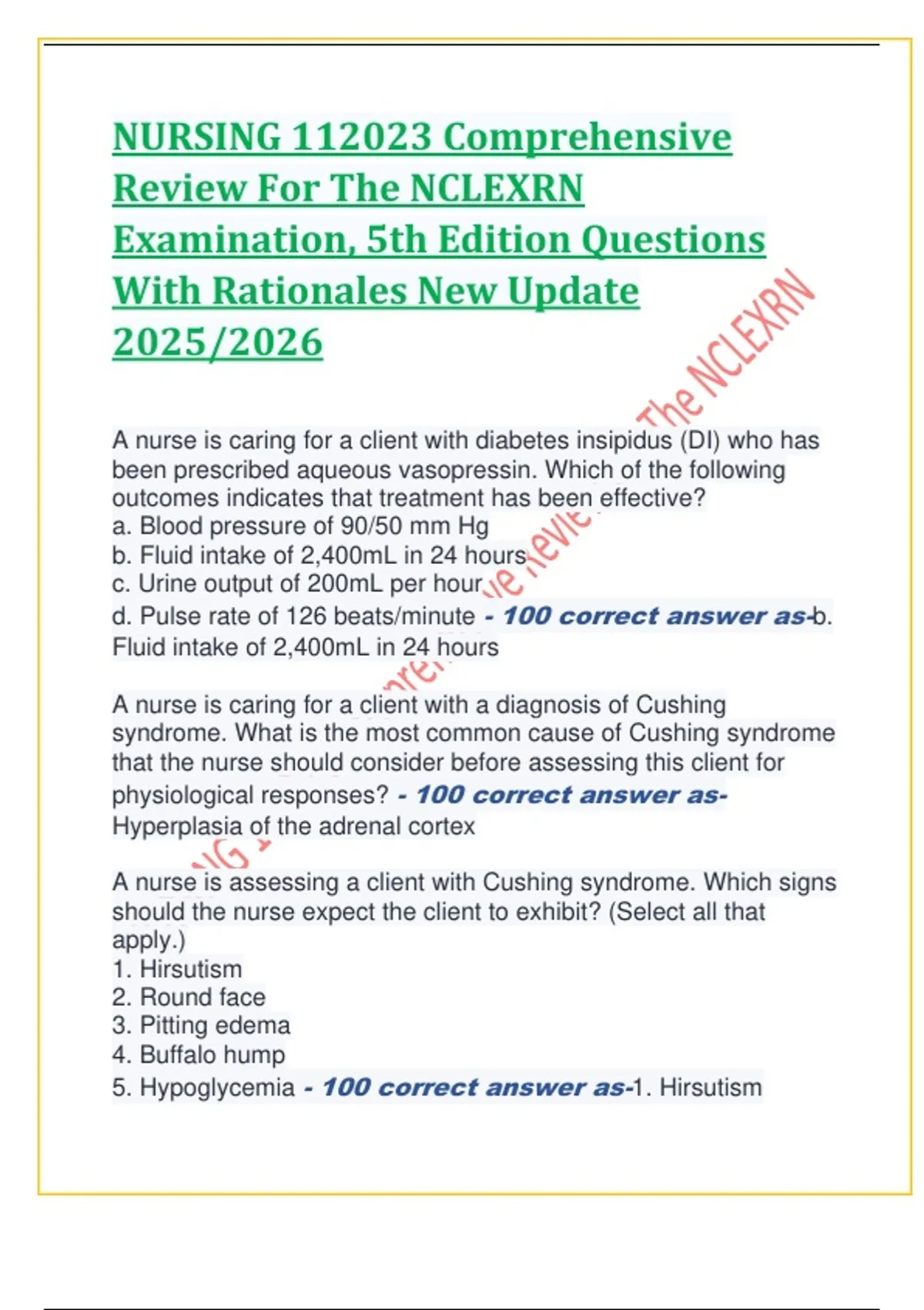 NURSING 112023 Comprehensive Review For The NCLEXRN Examination, 5th Edition Questions With Rationales New Update 2025/2026