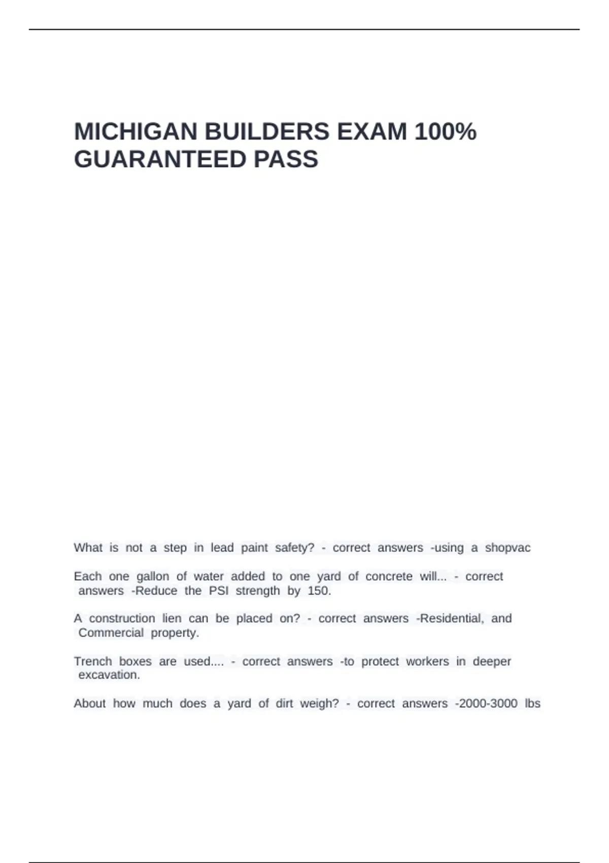MICHIGAN BUILDERS EXAM 100%