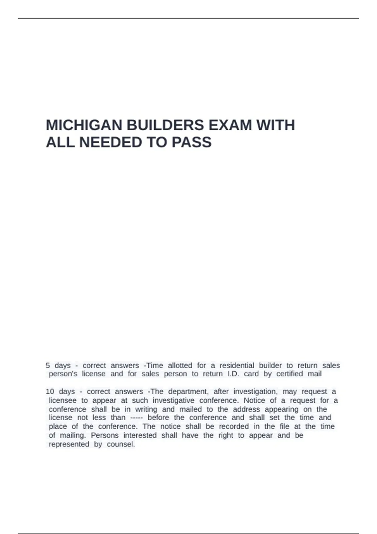 MICHIGAN BUILDERS EXAM WITH ALL NEEDED TO PASS