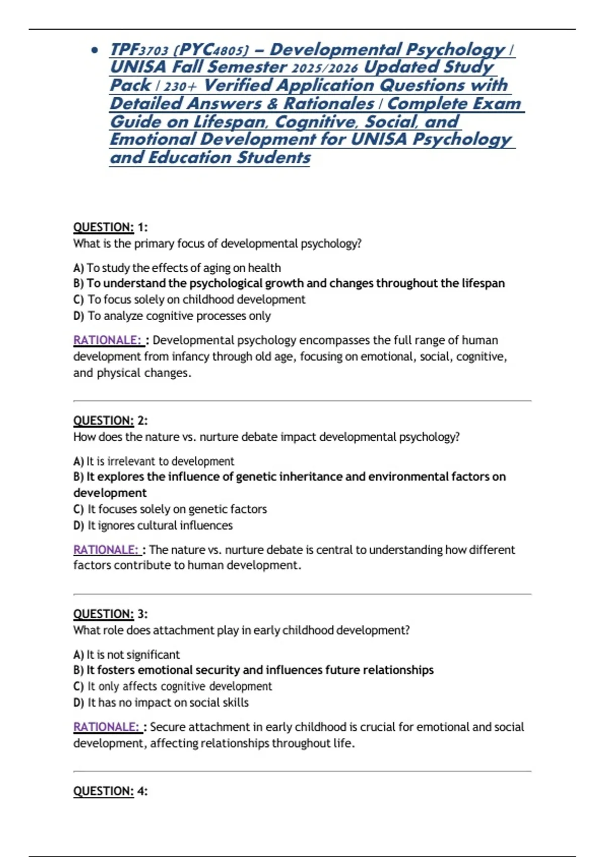 RATIONALE: : Developmental psychology encompasses the full range of human