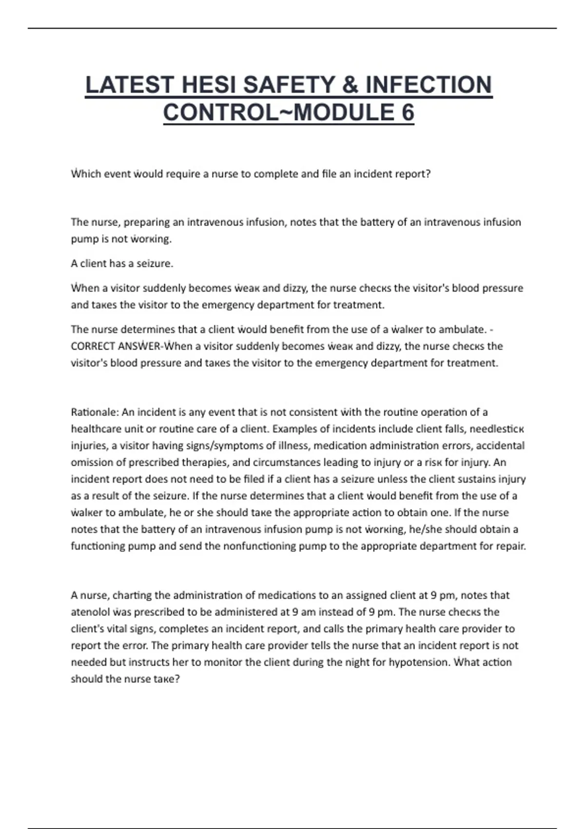Rationale: Incident reports are an important part of a healthcare agency's quality improvement