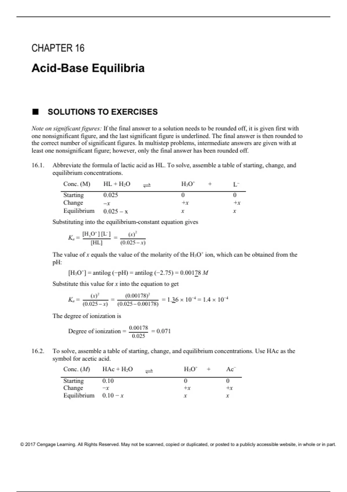 16.1. Abbreviate the formula of lactic acid as HL. To solve, assemble a table of starting, change, and