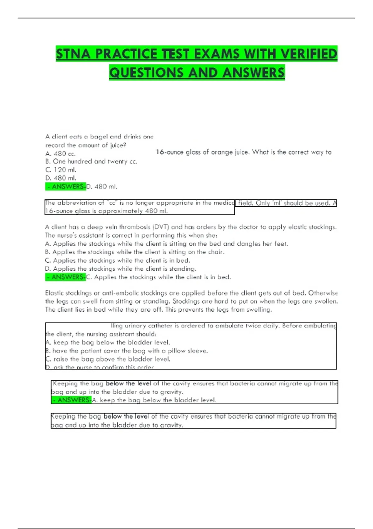 STNA Practice Test Exams 2024/2025 | Verified Questions and Correct Answers