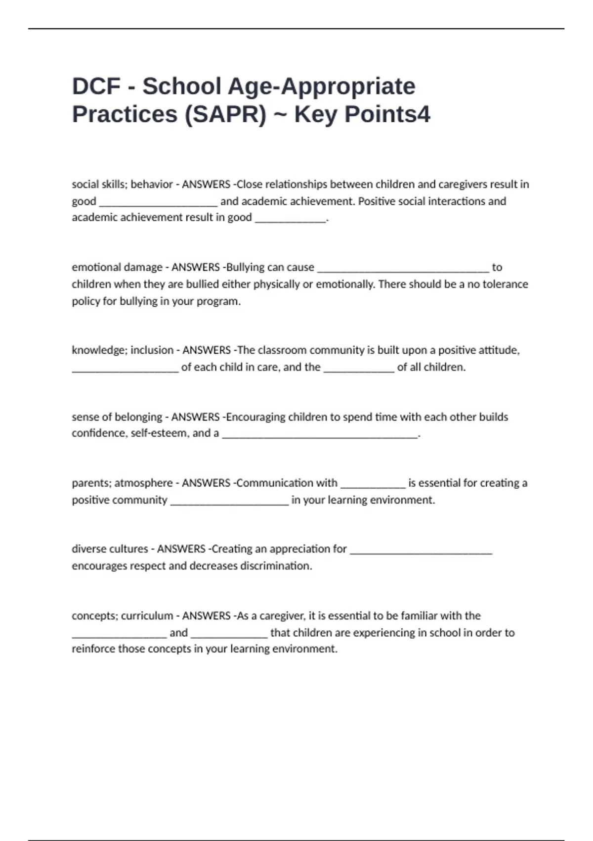 concepts; curriculum - ANSWERS -As a caregiver, it is essential to be familiar with the