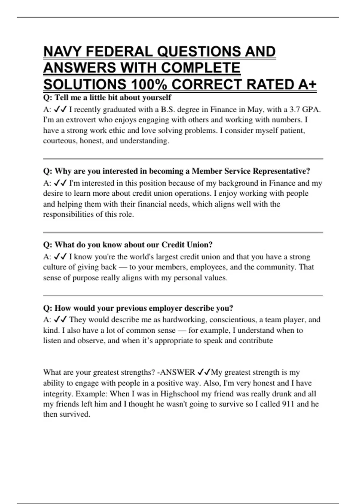 What are your greatest strengths? -ANSWER ✔✔My greatest strength is my