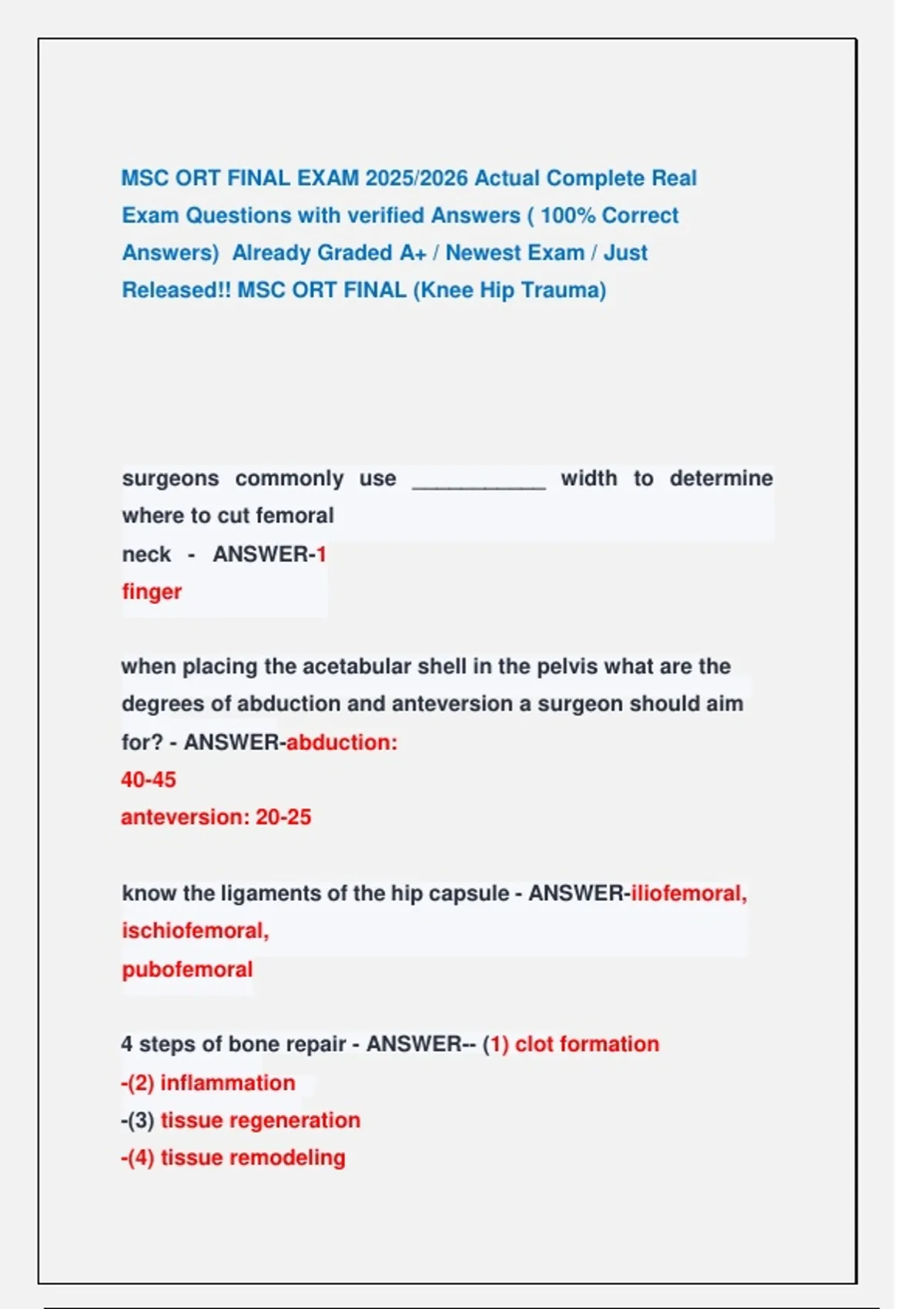 MSC ORT FINAL EXAM 2025/2026 Actual Complete Real Exam Questions with verified Answers ( 100% Correct Answers) Already Graded A+ / Newest Exam / Just Released!! MSC ORT FINAL (Knee Hip Trauma) MSC ORT FINAL EXAM 2025/2026 Actual Complete Real Exam Questions with verified Answers ( 100% Correct Answers) Already Graded A+ / Newest Exam / Just Released!! MSC ORT FINAL (Knee Hip Trauma) MSC ORT FINAL EXAM 2025/2026 Actual Complete Real Exam Questions with verified Answers ( 100% Correct Answers) Already Graded A+ / Newest Exam / Just Released!! MSC ORT FINAL (Knee Hip Trauma) MSC ORT FINAL EXAM 2025/2026 Actual Complete Real Exam Questions with verified Answers ( 100% Correct Answers) Already Graded A+ / Newest Exam / Just Released!! MSC ORT FINAL (Knee Hip Trauma) MSC ORT FINAL EXAM 2025/2026 Actual Complete Real Exam Questions with verified Answers ( 100% Correct Answers) Already Graded A+ / Newest Exam / Just Released!! MSC ORT FINAL (Knee Hip Trauma)