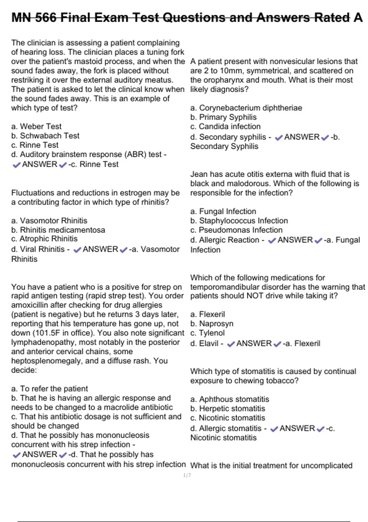 , MN 566 Final Exam Test Questions and Answers Rated A