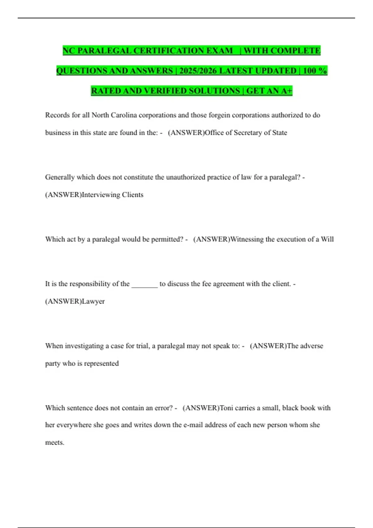 QUESTIONS AND ANSWERS | 2025/2026 LATEST UPDATED | 100 %